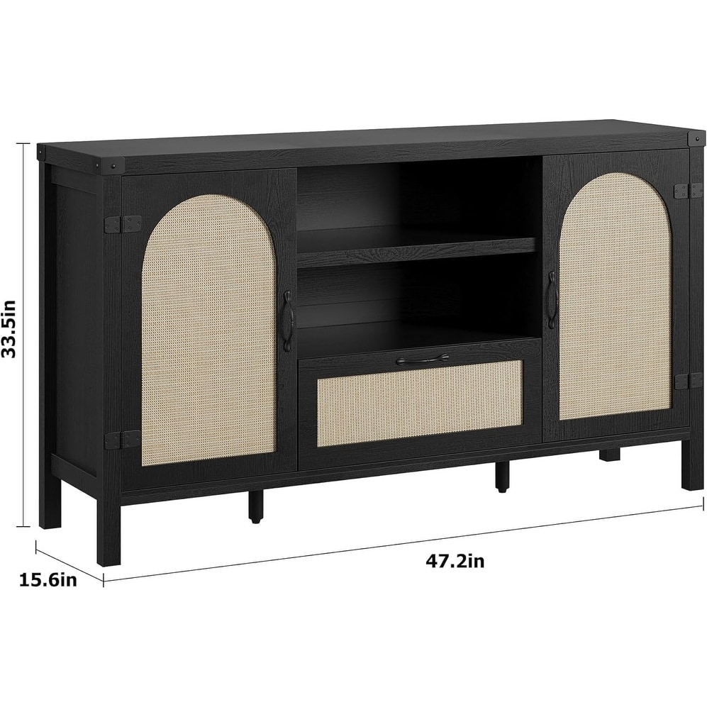 47.2" Black Rattan Farmhouse Buffet Coffee Bar