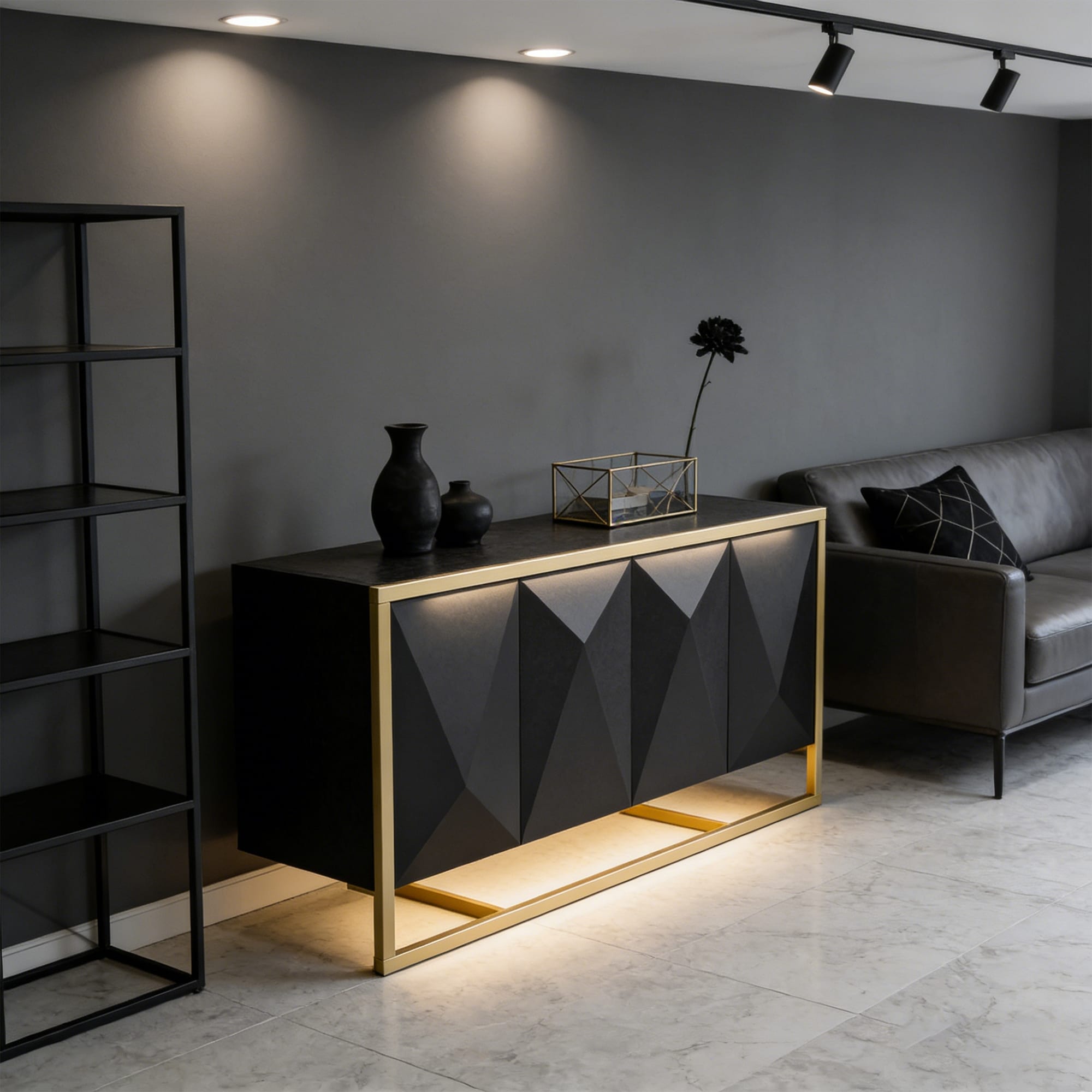 WAMPAT Modern Sideboard Buffet with Leather-Textured Doors