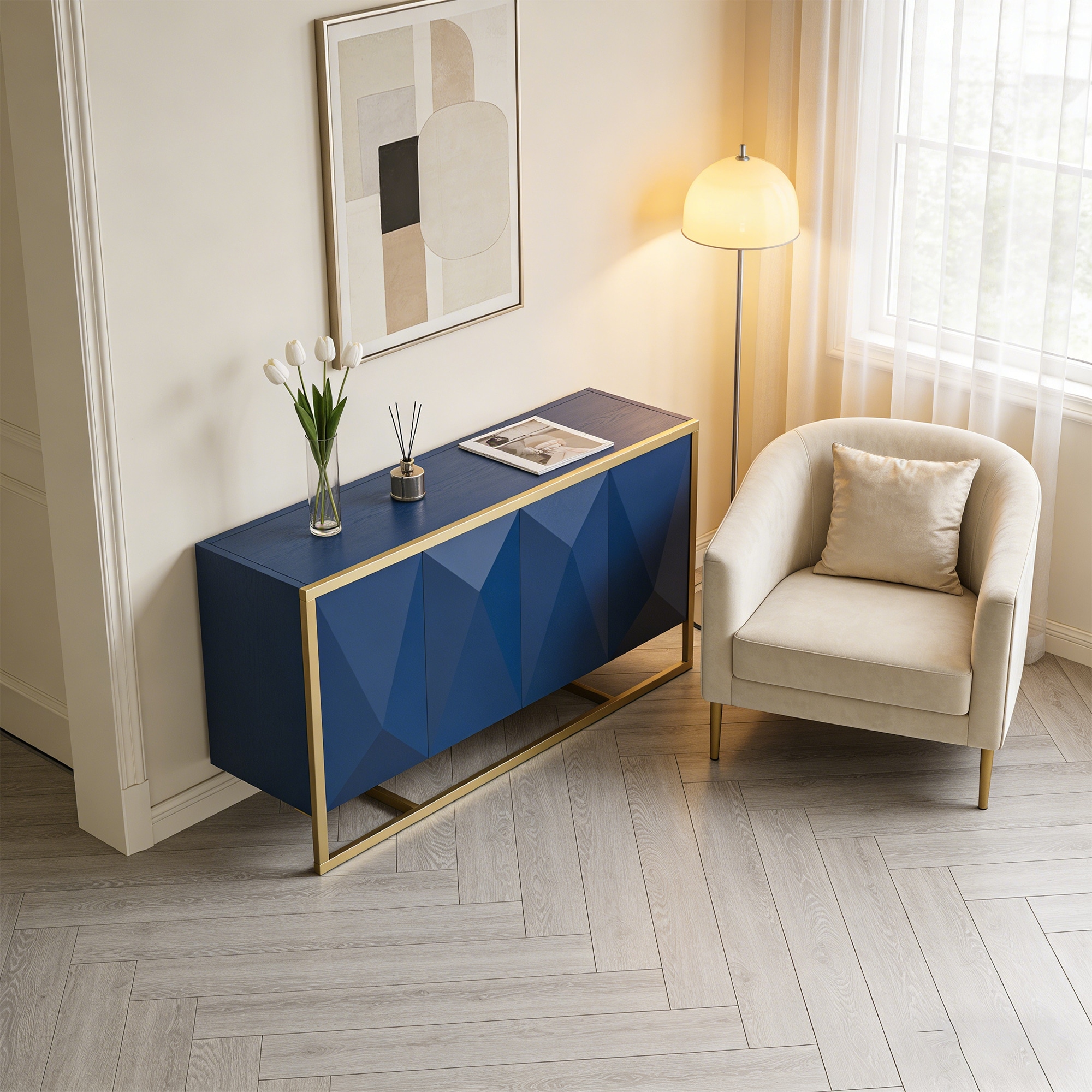 Modern 4-Door Accent Storage Sideboard, Luxurious Freestanding Cabinet with Anti-Tipping