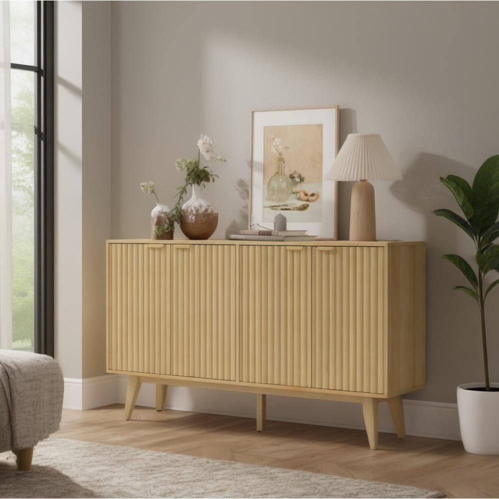 Convenient Cabinet,Fluted Sideboard Buffet Cabinet,with Doors,Adjustable Shelves,Wood Legs