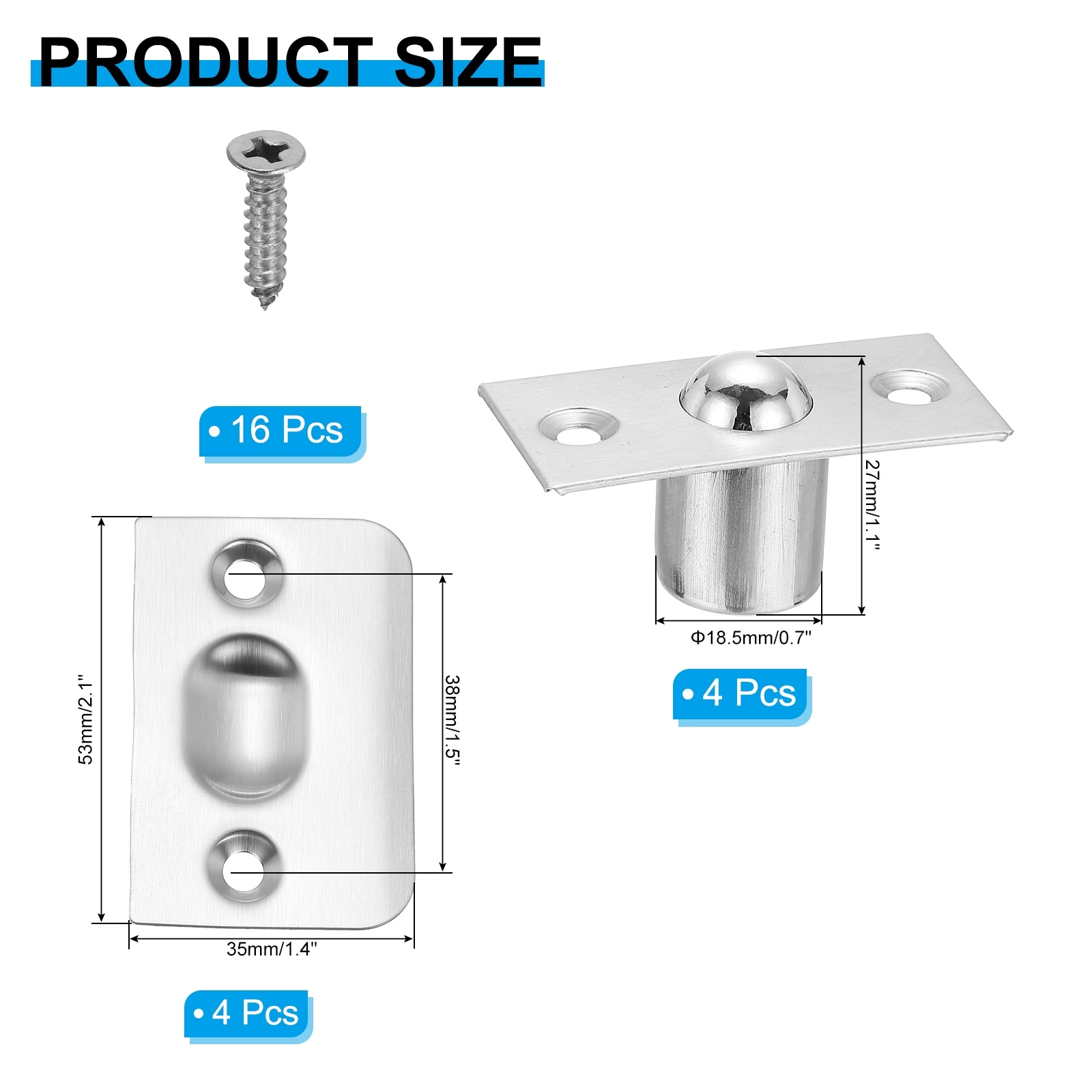 Closet Ball Catch Door Hardware with Strike Plate & Screw - Silver