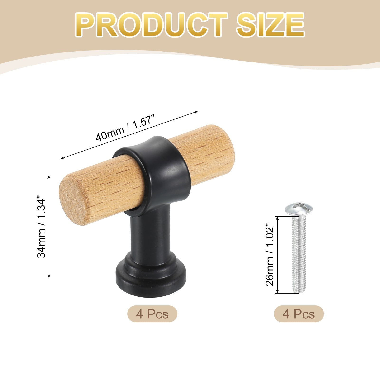 T-Bar Wooden Drawer Pulls, Wood Cabinet Pulls Single Hole Drawer Knobs with Base and Screws for Home Kitchen Room