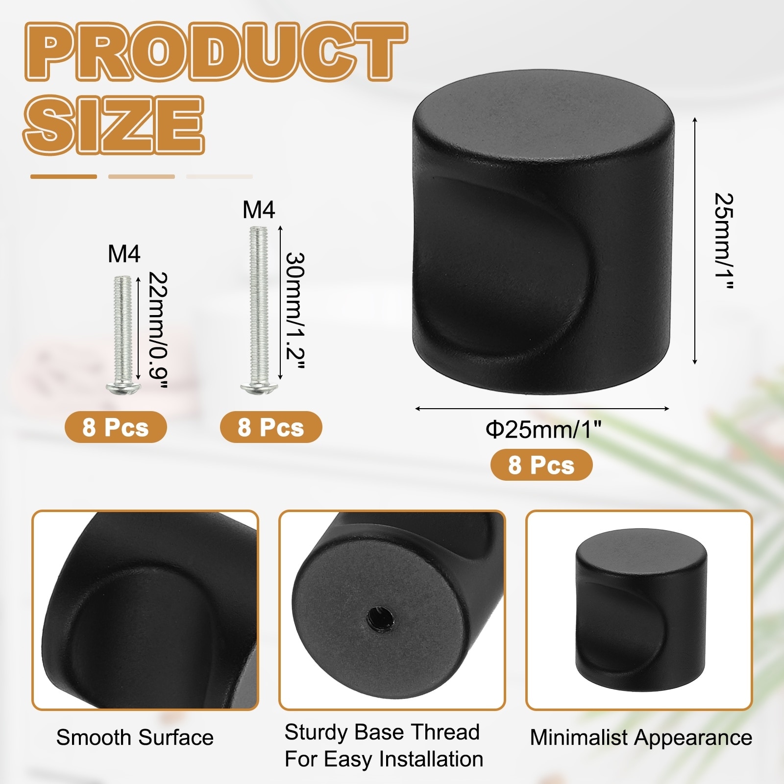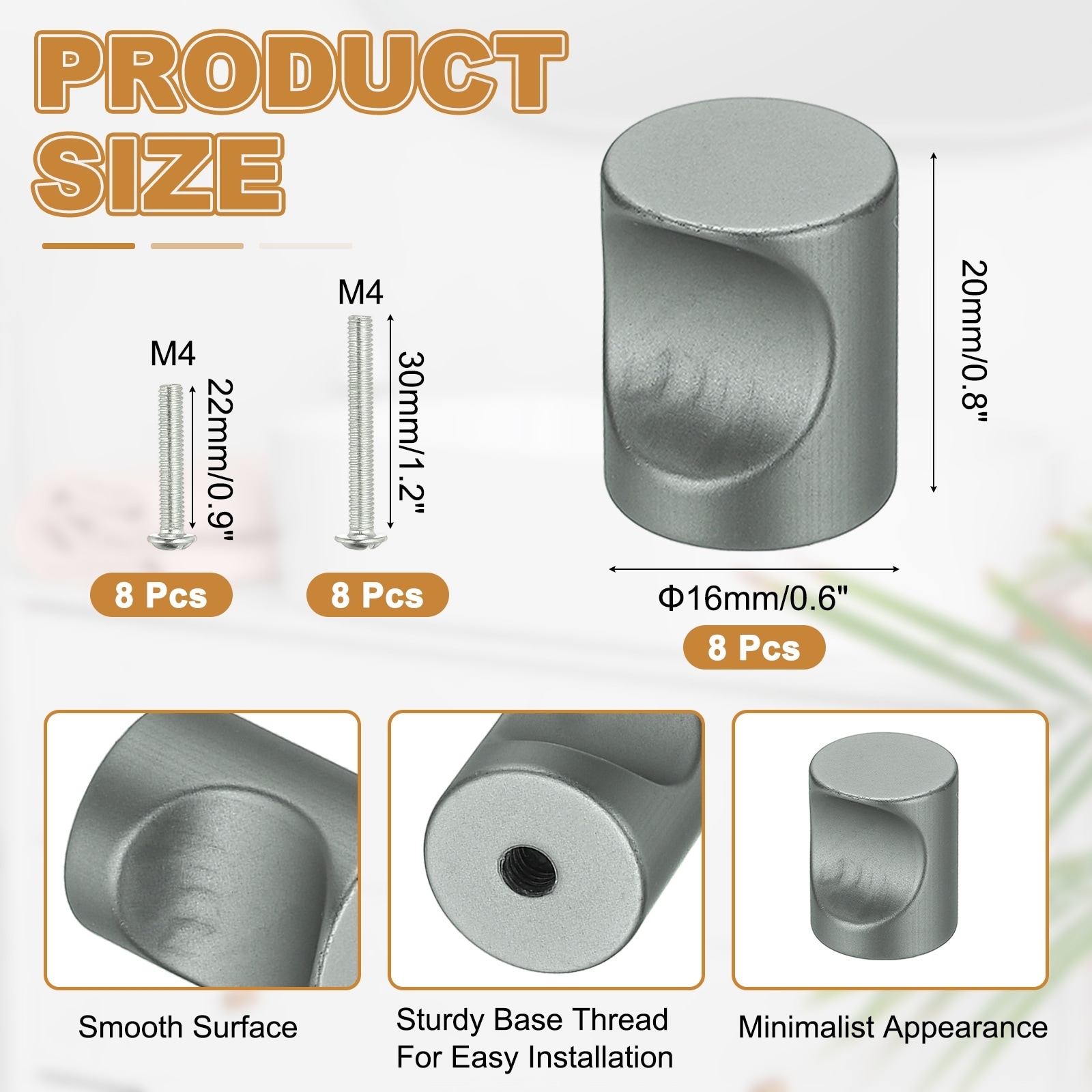 8 Pcs Cylindrical Aluminum Alloy Knobs, Single Hole Pull with Screw