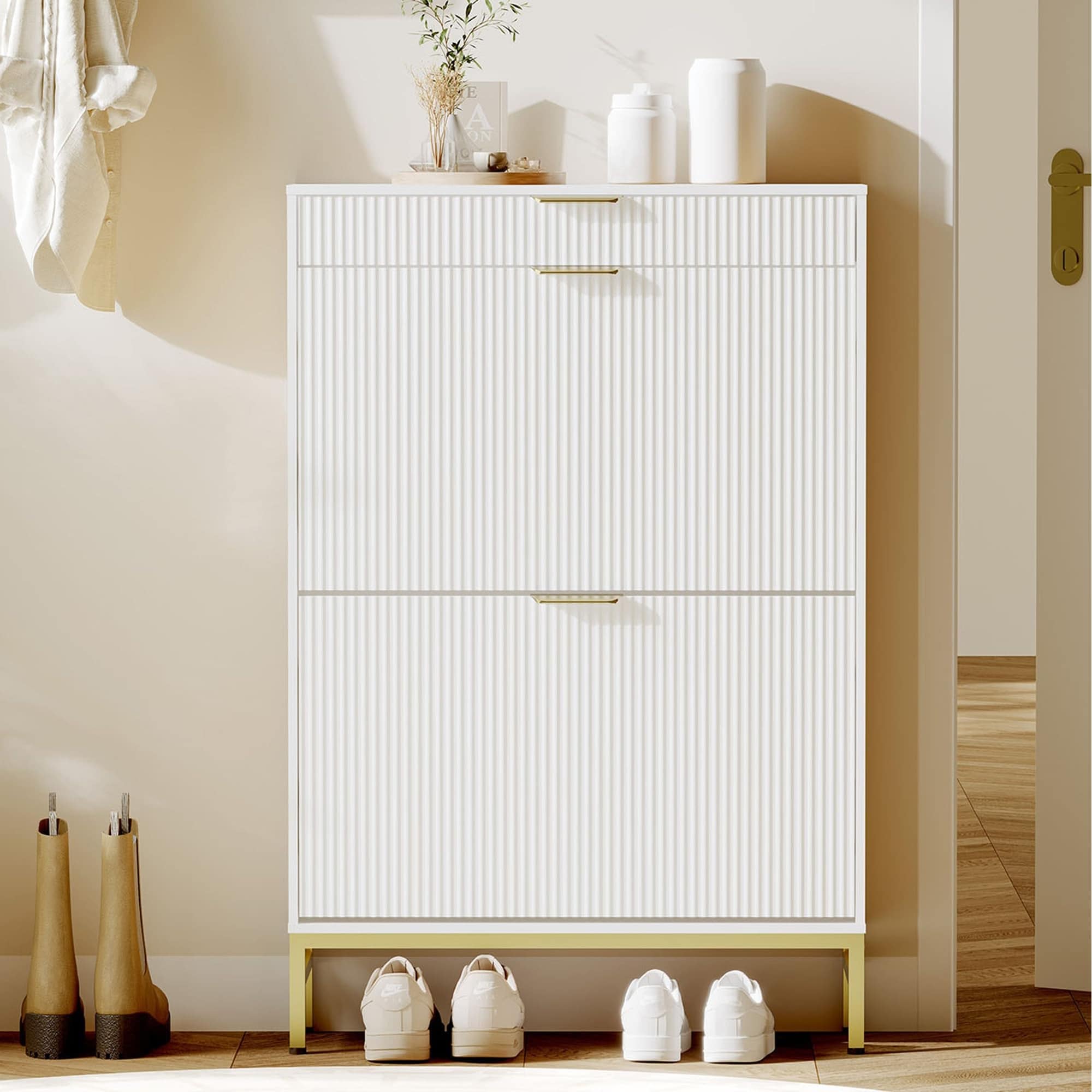 Shoe Storage Cabinet with 2 Flip Drawers 1 Small Drawer