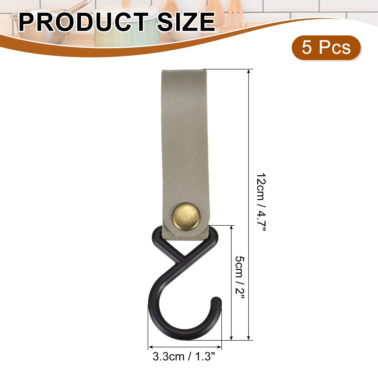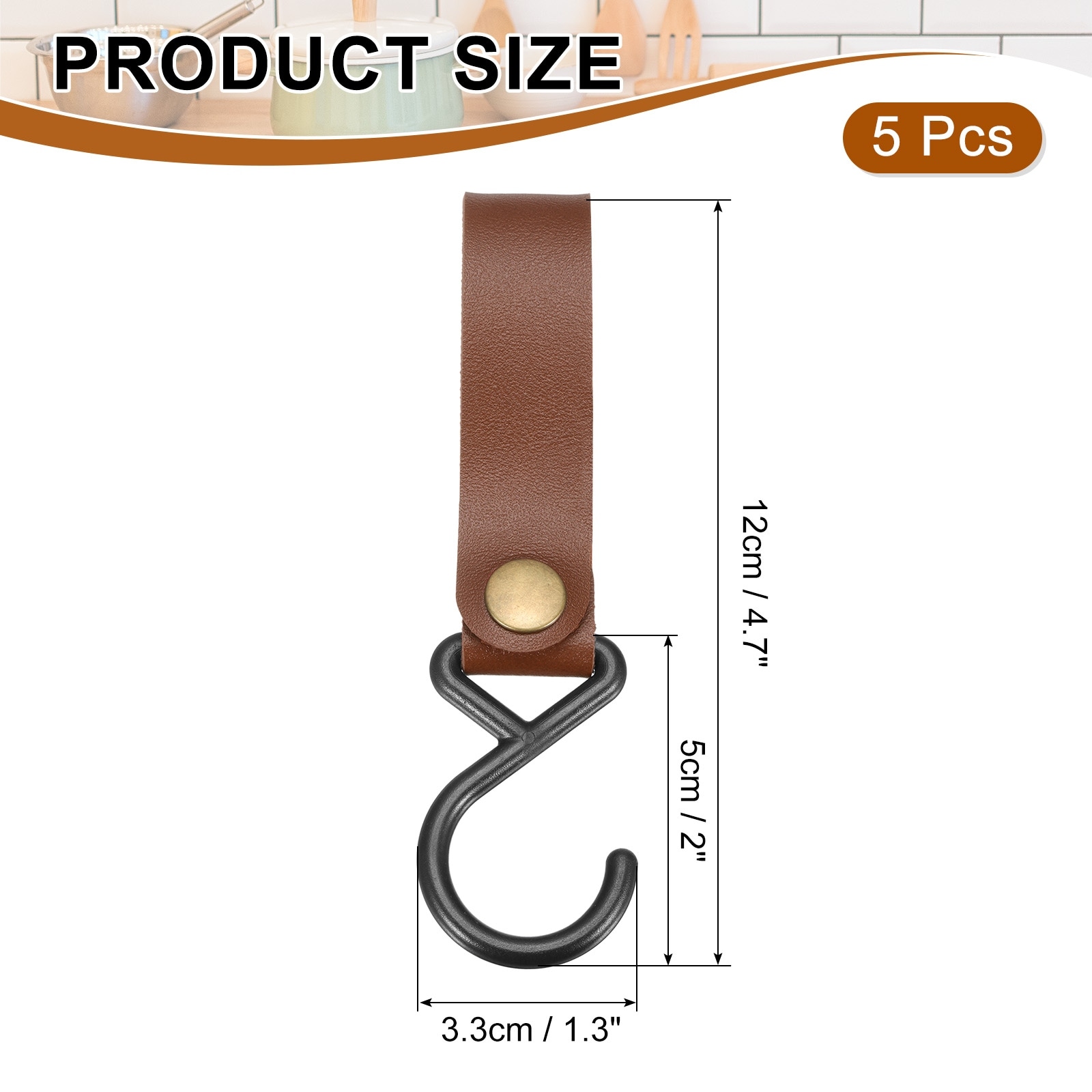 PU Leather Hooks, Leather Straps with Hooks, S-Shape Hooks for Outdoor Camping Hanging Pots Pans Utensils - 20.5cm