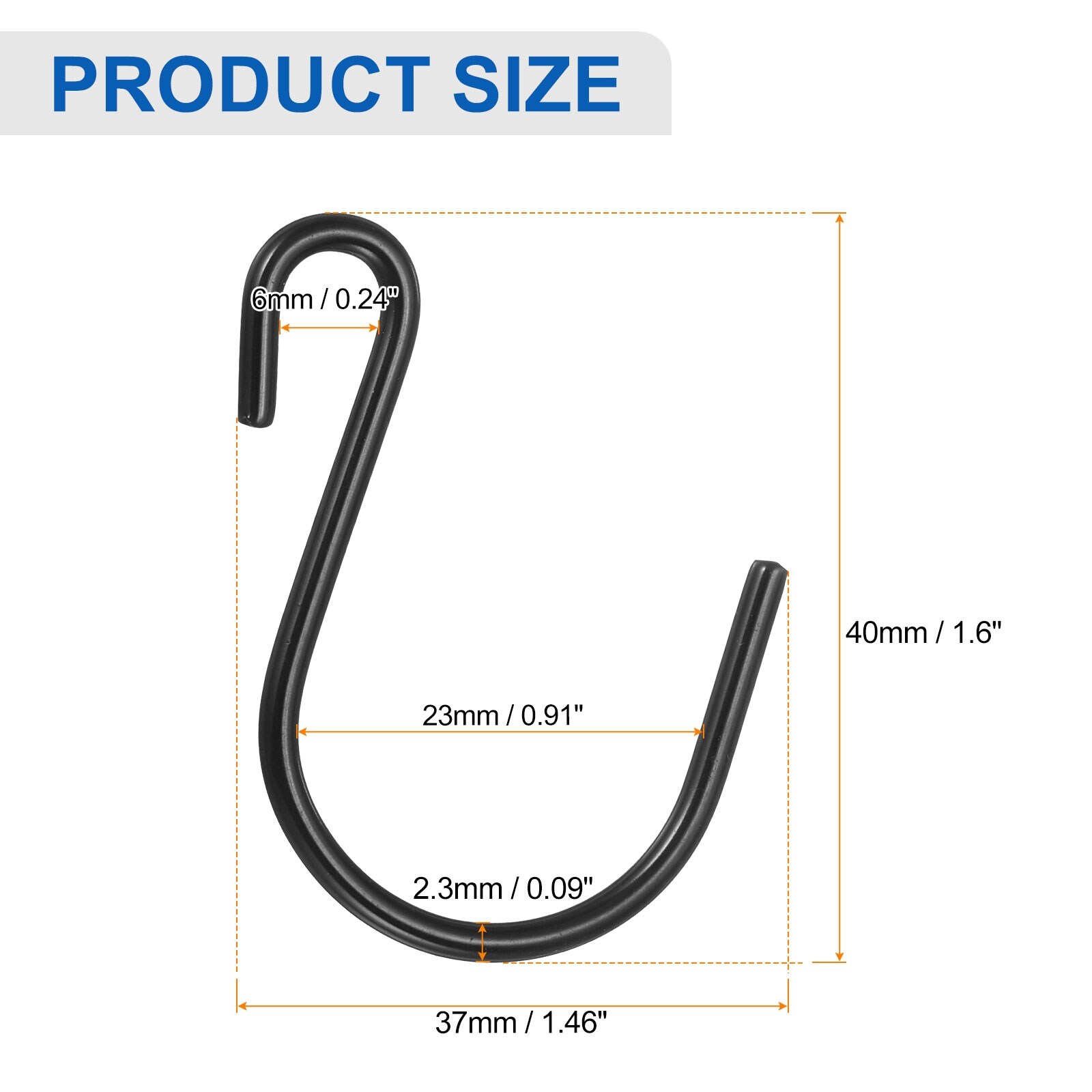 60pcs S Hooks 1.6" Metal Hanging S Shaped Hooks Closet Rod Hook, Black - 1 set