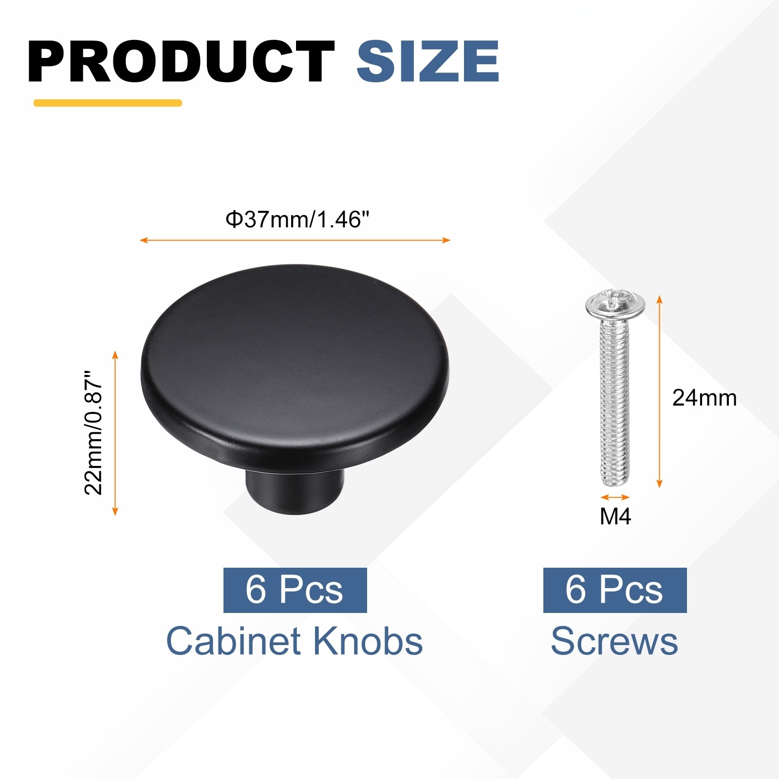 Cabinet Knobs, Solid Drawer Knobs Single Hole Aluminum Alloy Cabinet Handles Pulls with Screws - Black