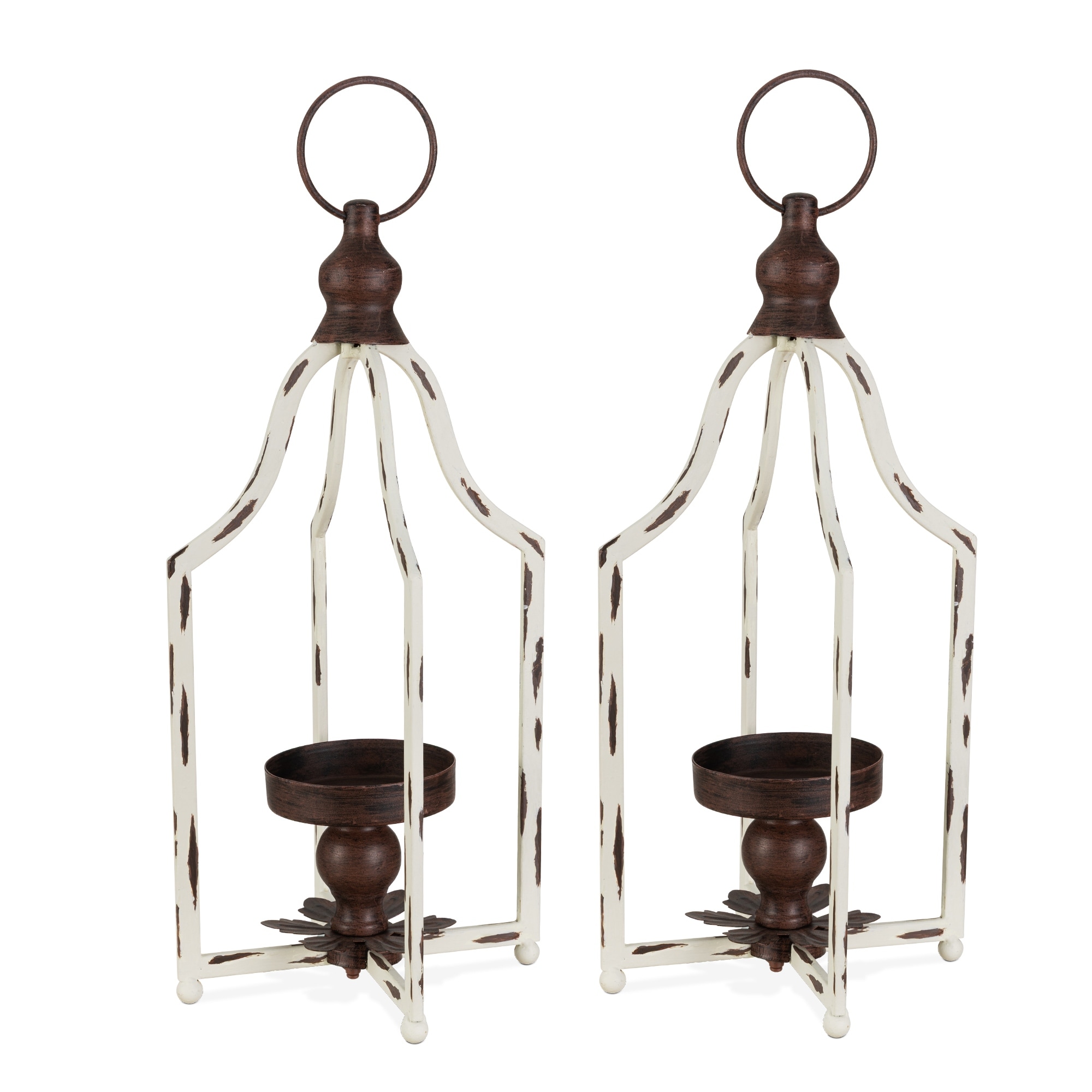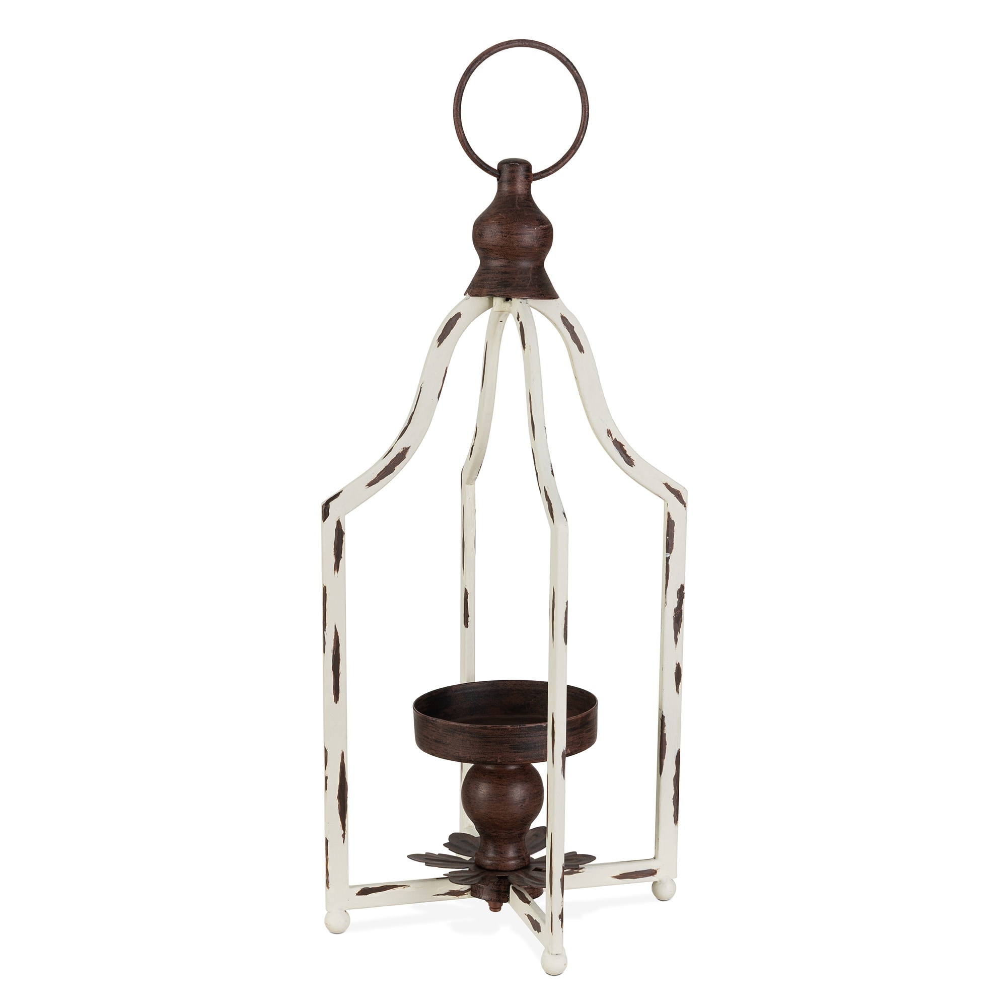 Glitzhome 16.50"H Modern Farmhouse Small Antique White Metal Lantern Candle Holder