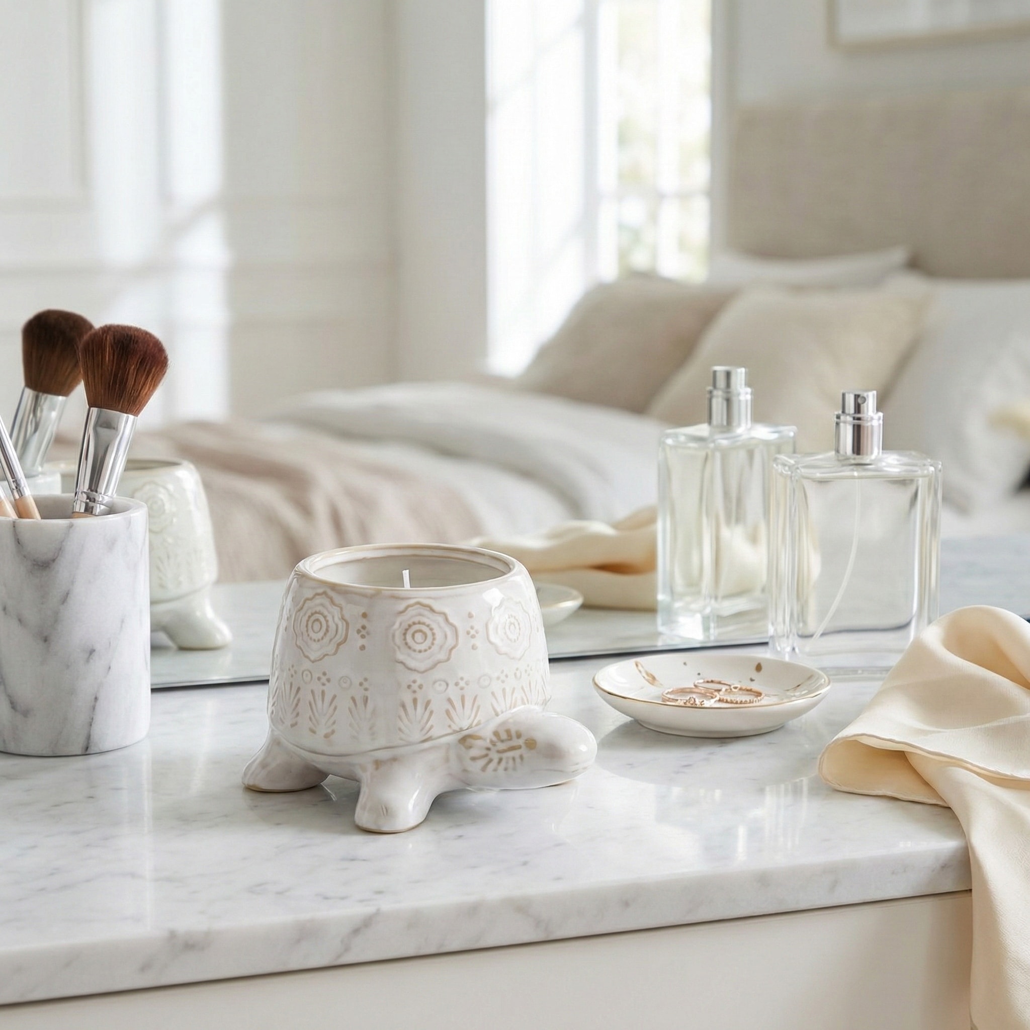 Lavender Turtle Ceramic Scented Candle - 7", White & Ivory - 6.5"