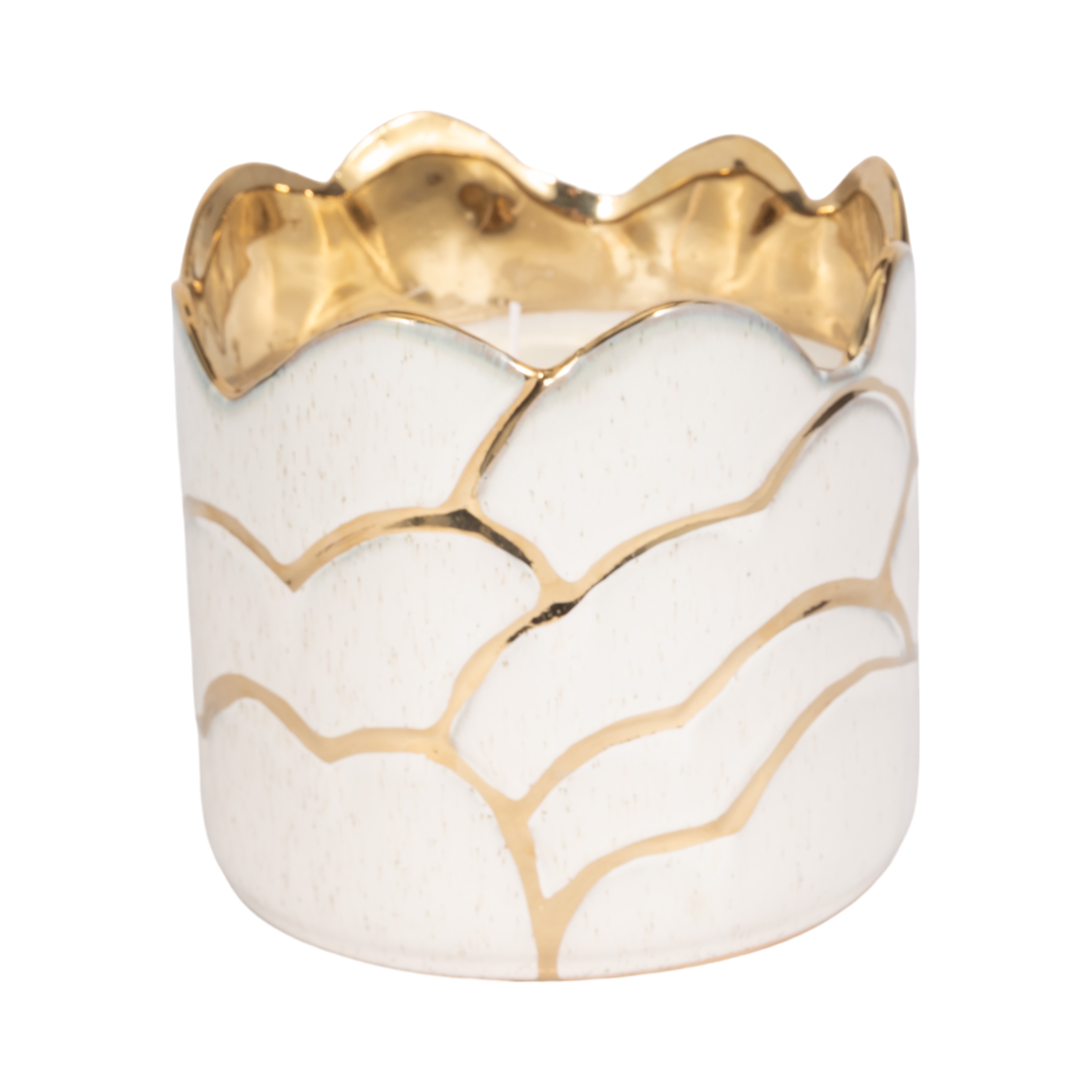 Sagebrook Home Ivory/Gold Ceramic 7" Candle 42 Oz Tobacco Clouds Scent - 7" x 7" x 6"