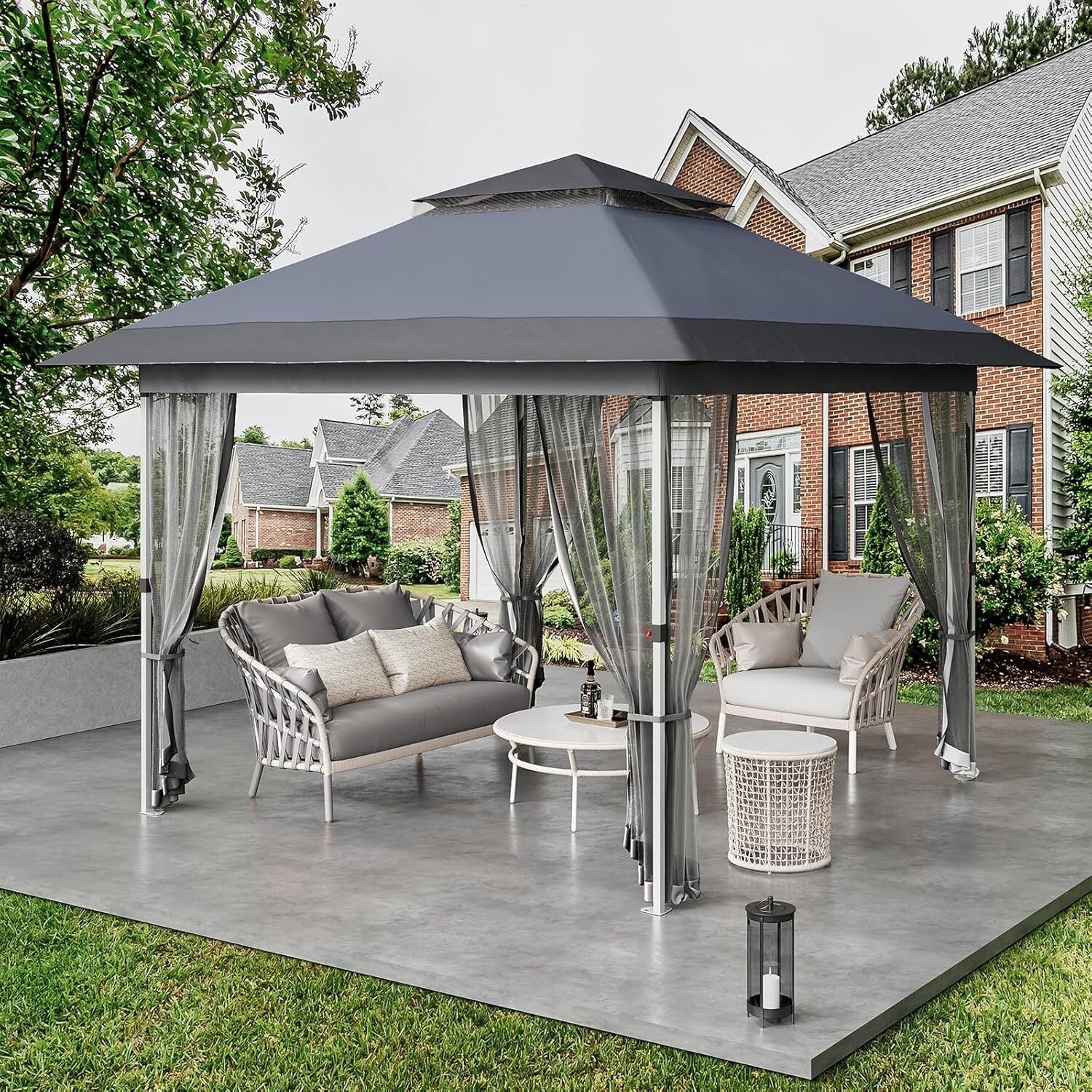 Modern Waterproof 12X12 Ft Instant Pop-Up Gazebo, All-Weather Canopy Tent for Patio, Garden, Backyard, Party - N/A