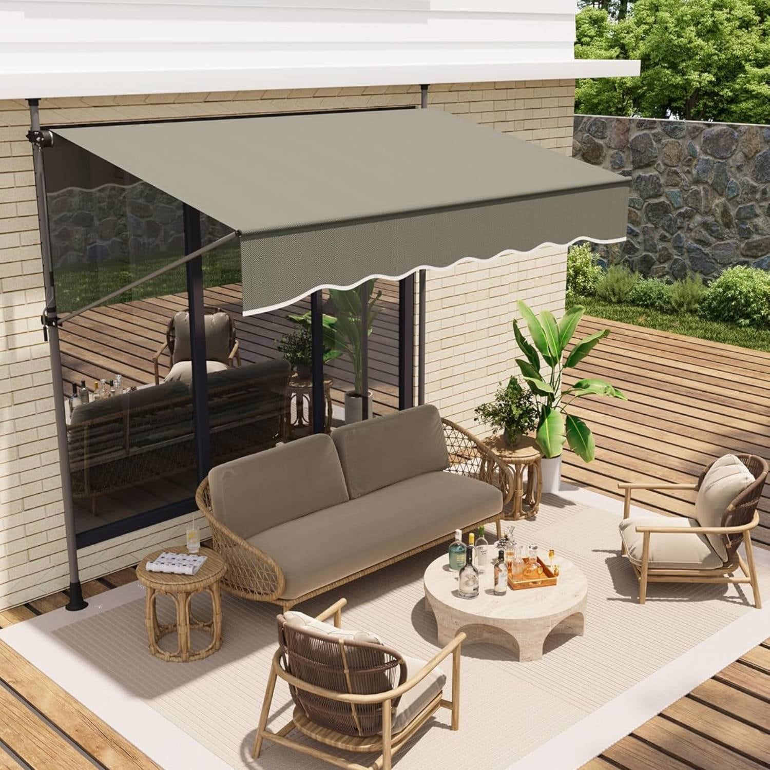 Outdoor Sunshade Shelter, Manual Patio Retractable Awning, UV Protection for Backyard Garden - N/A