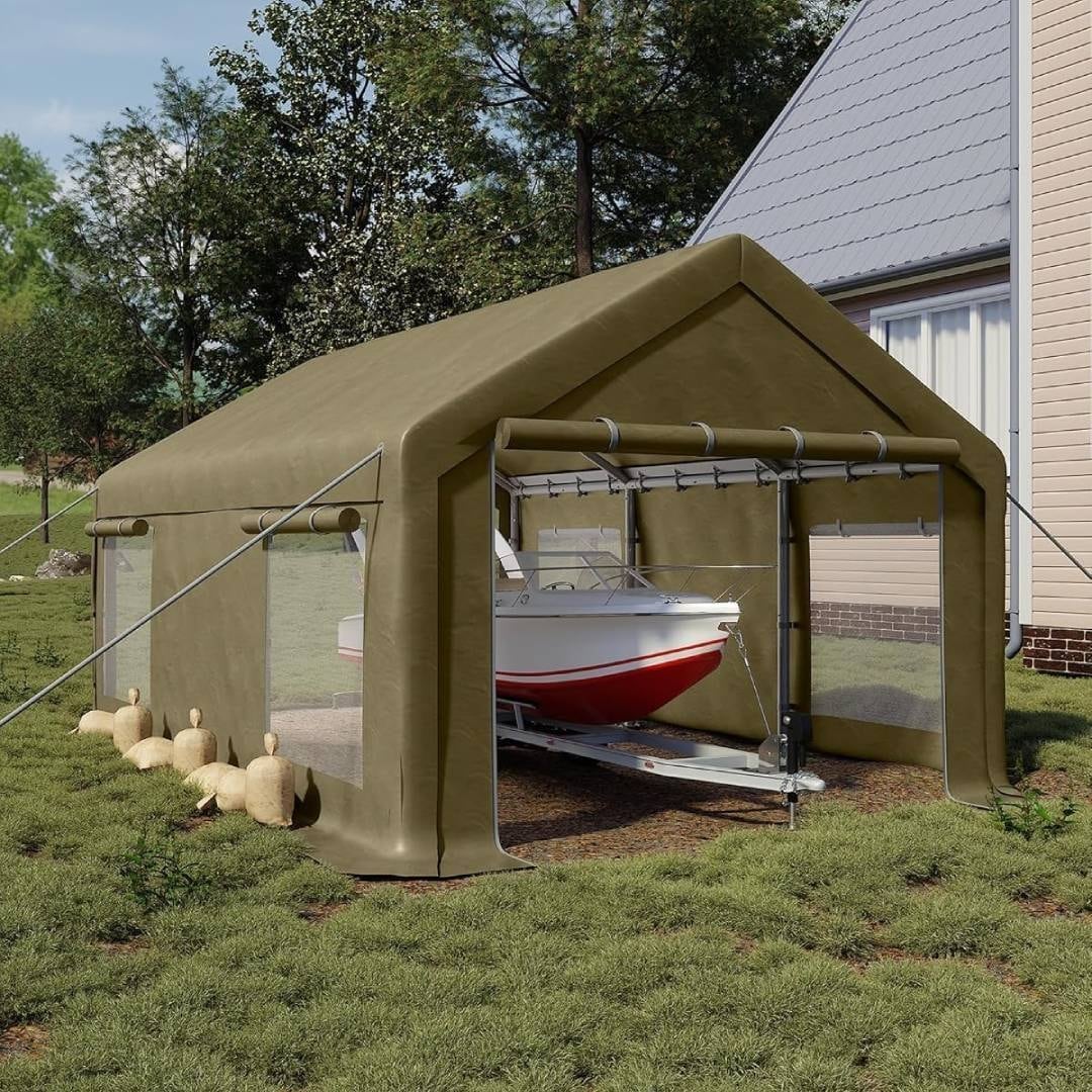 12x20 Ft Carport with Roll-Up Doors and 4 Windows for Bass Boats, Tractors, and SUVs - 12X20 Ft