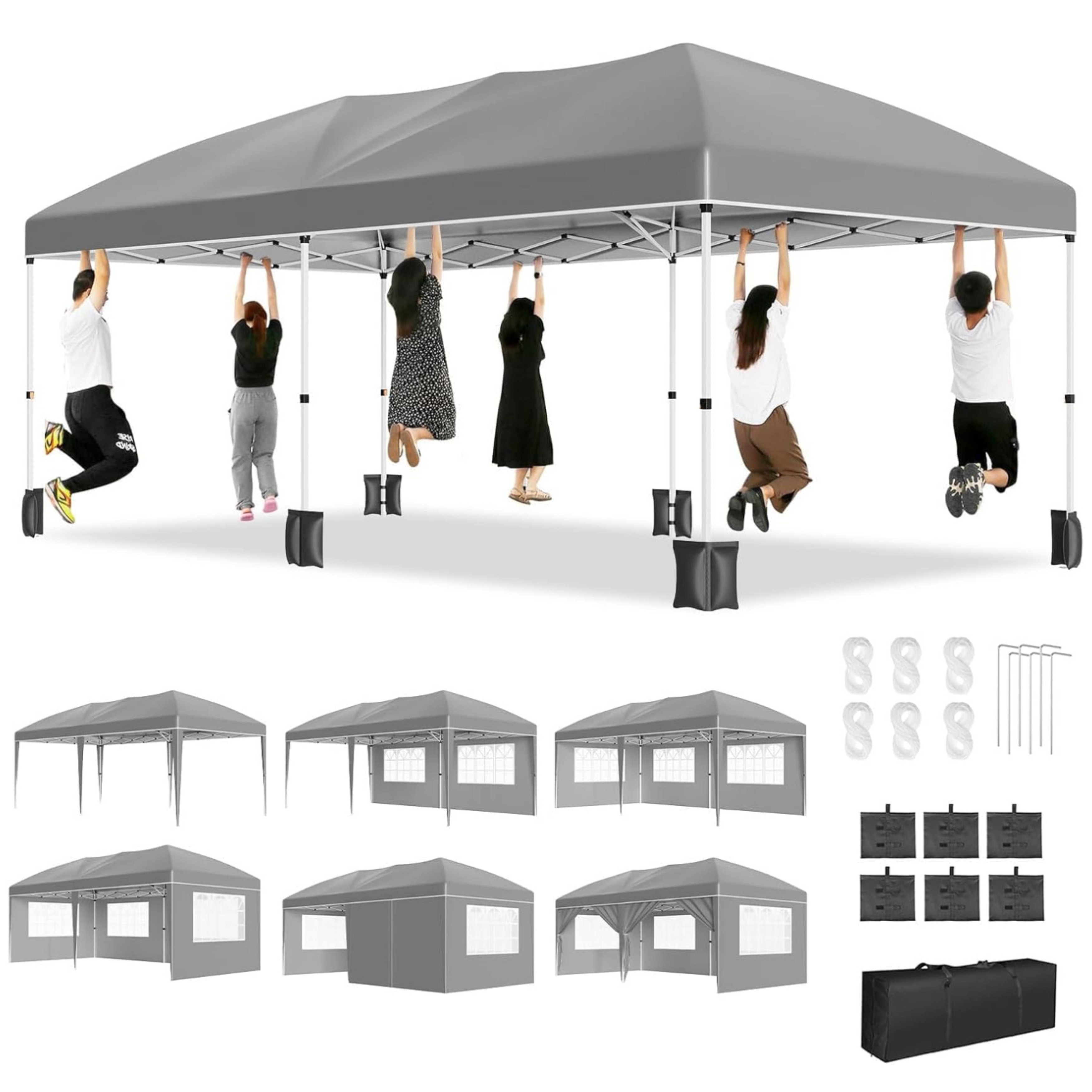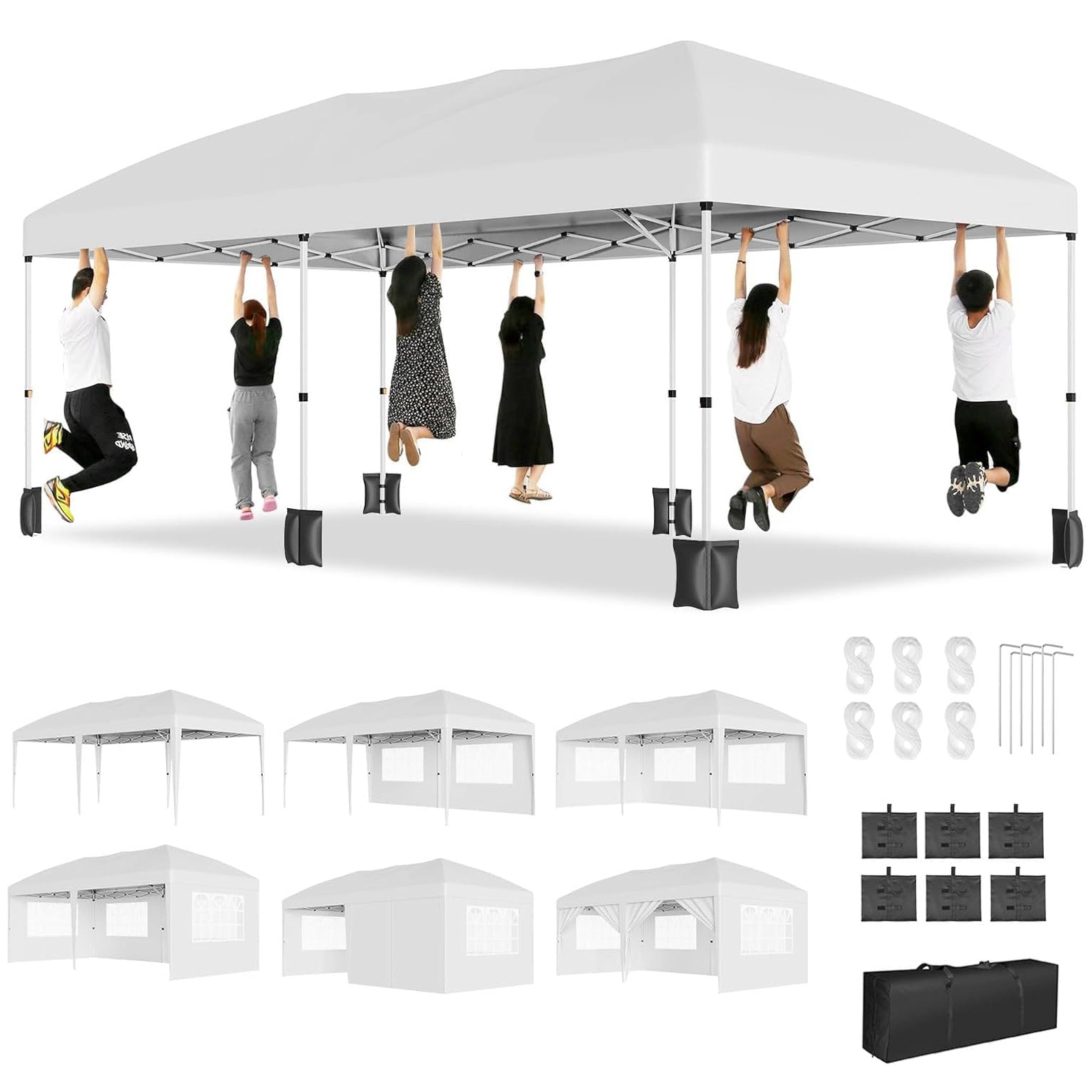 10X20 Ft Instant Waterproof Portable Pop-Up Canopy Tent with 4 Sidewalls for Outdoor Camping, Beach, Backyard