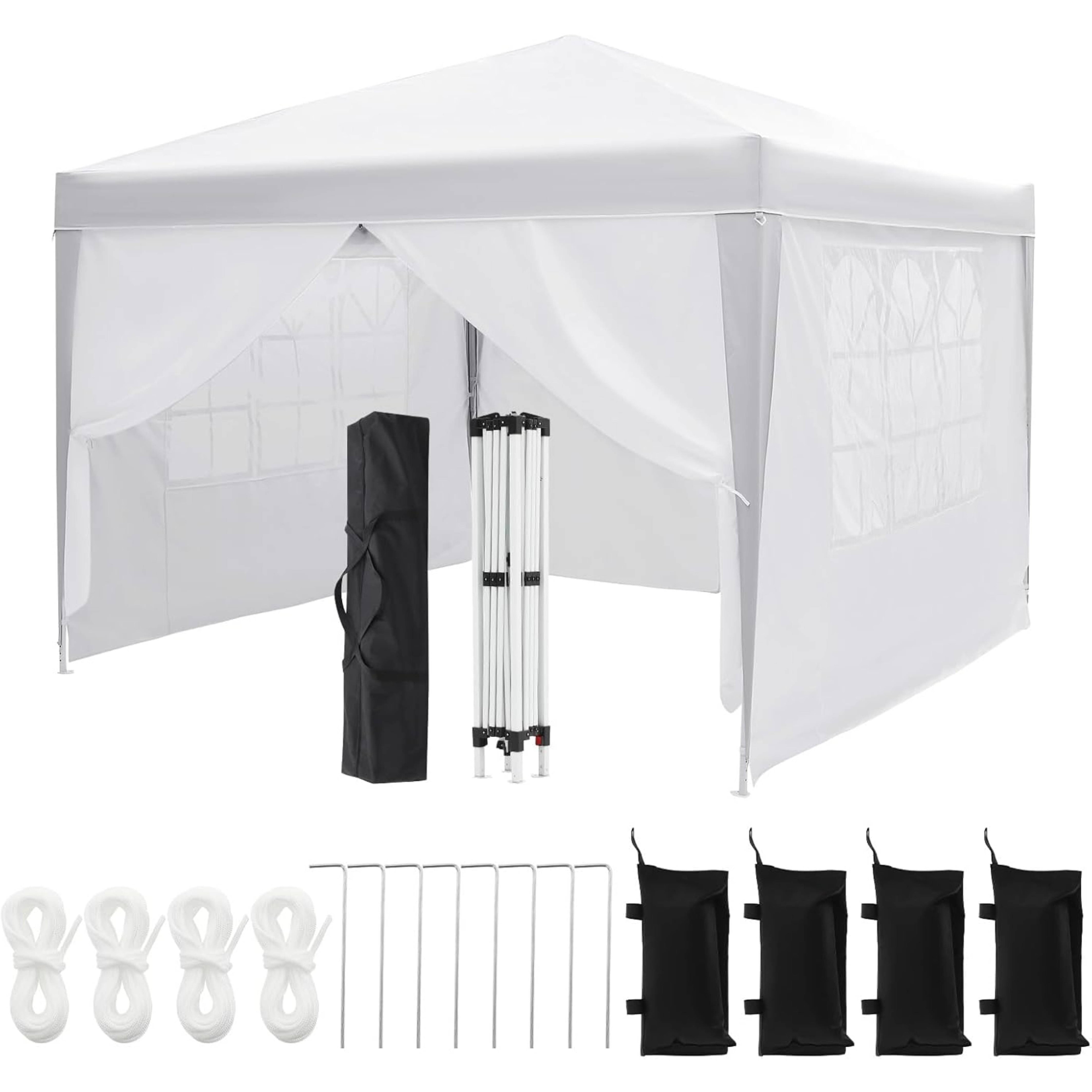 10X10 Ft Instant Waterproof Portable Pop-Up Canopy Tent with 4 Sidewalls for Outdoor Camping, Beach, Backyard