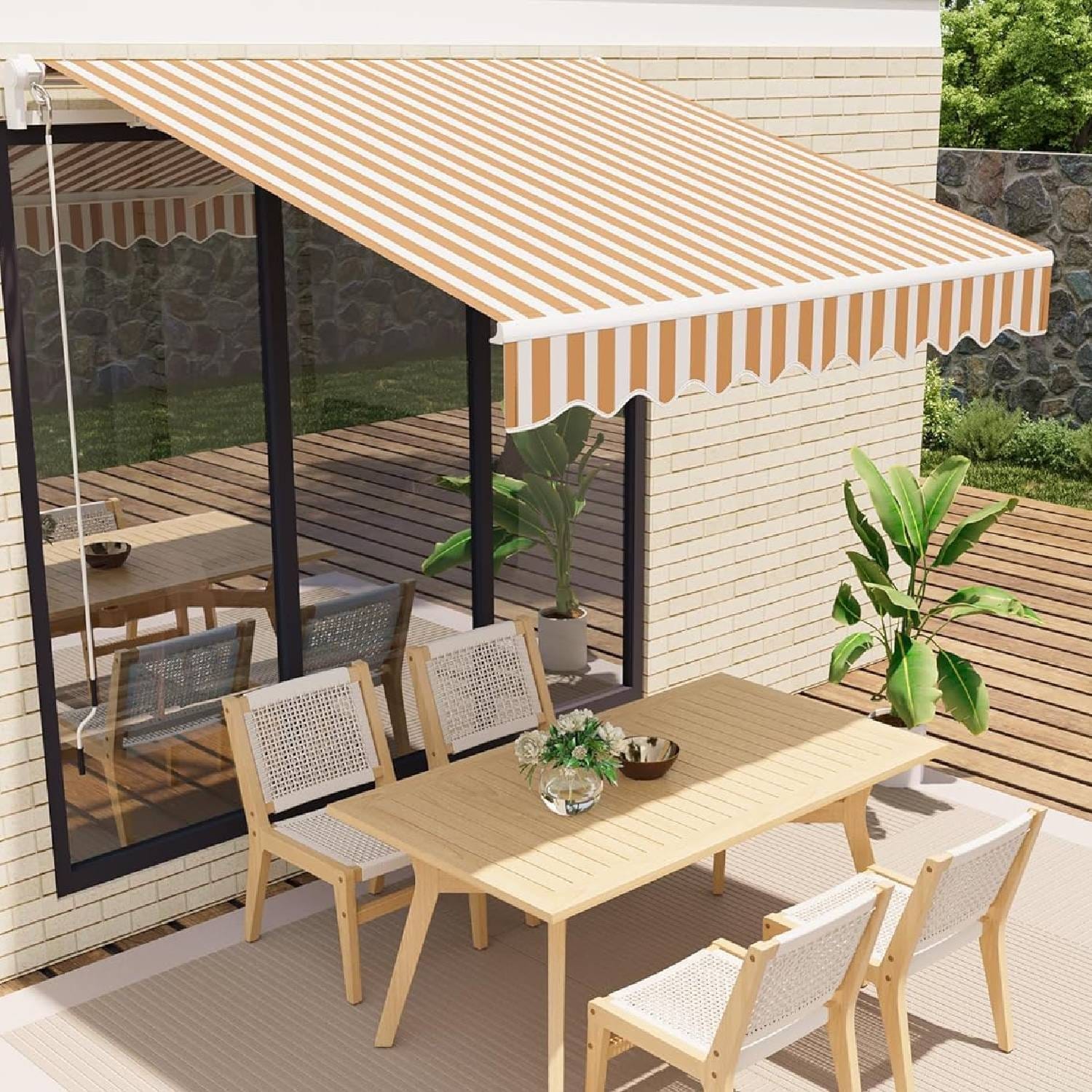 10'x8' Retractable Waterproof Patio Awning, Sun Shade Awning with Manual Crank Handle - N/A