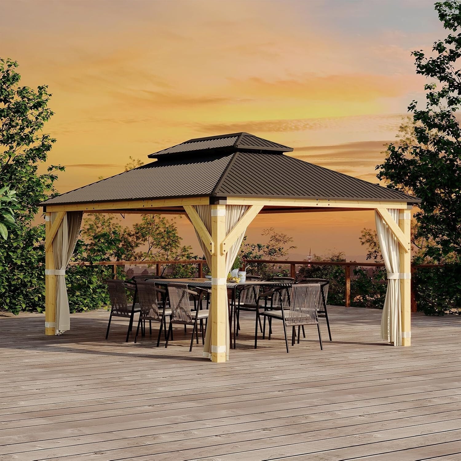 12'x16' Wood Hardtop Gazebo for Patio, Deck, Backyard, Lawn, and Garden - 12X16 Ft
