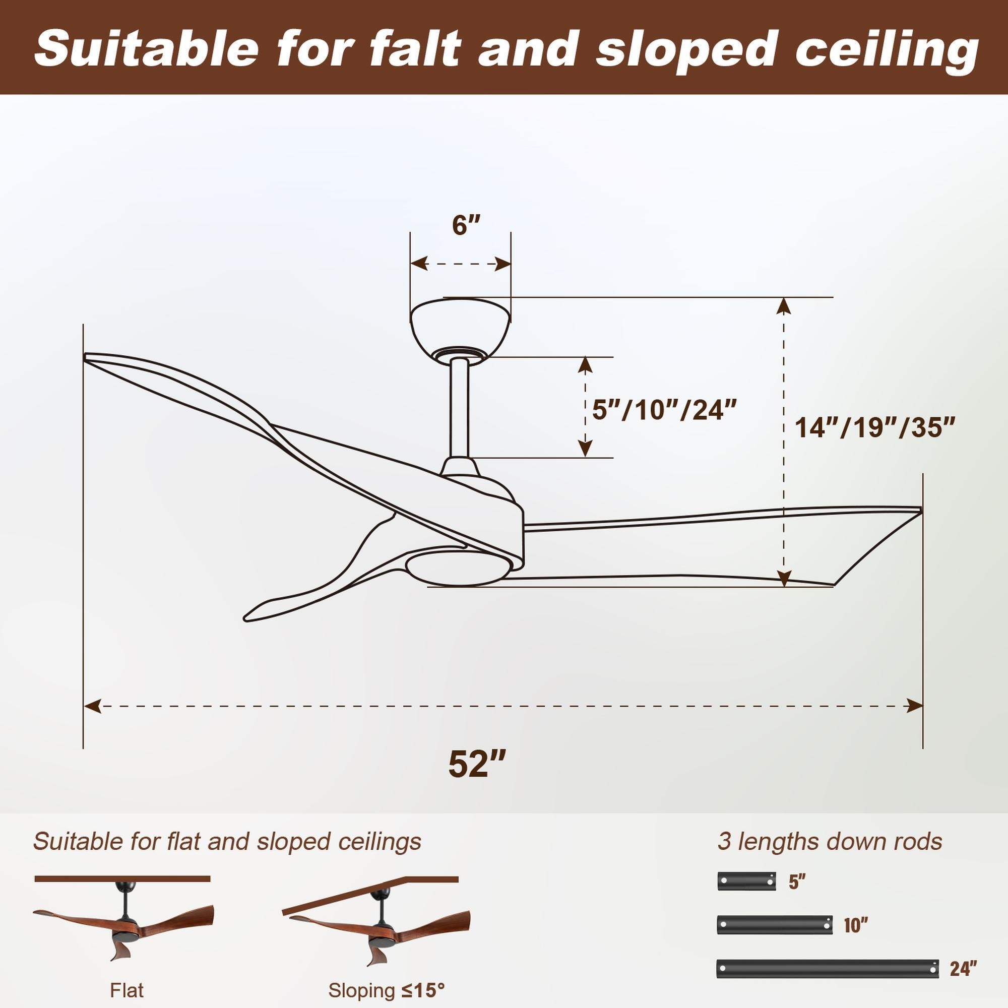 52'' ABS Blades Ceiling Fan with Remote (6 Speeds Adjustable), Modern LED Integrated Ceiling Fan Lighting, Reversible DC Motor