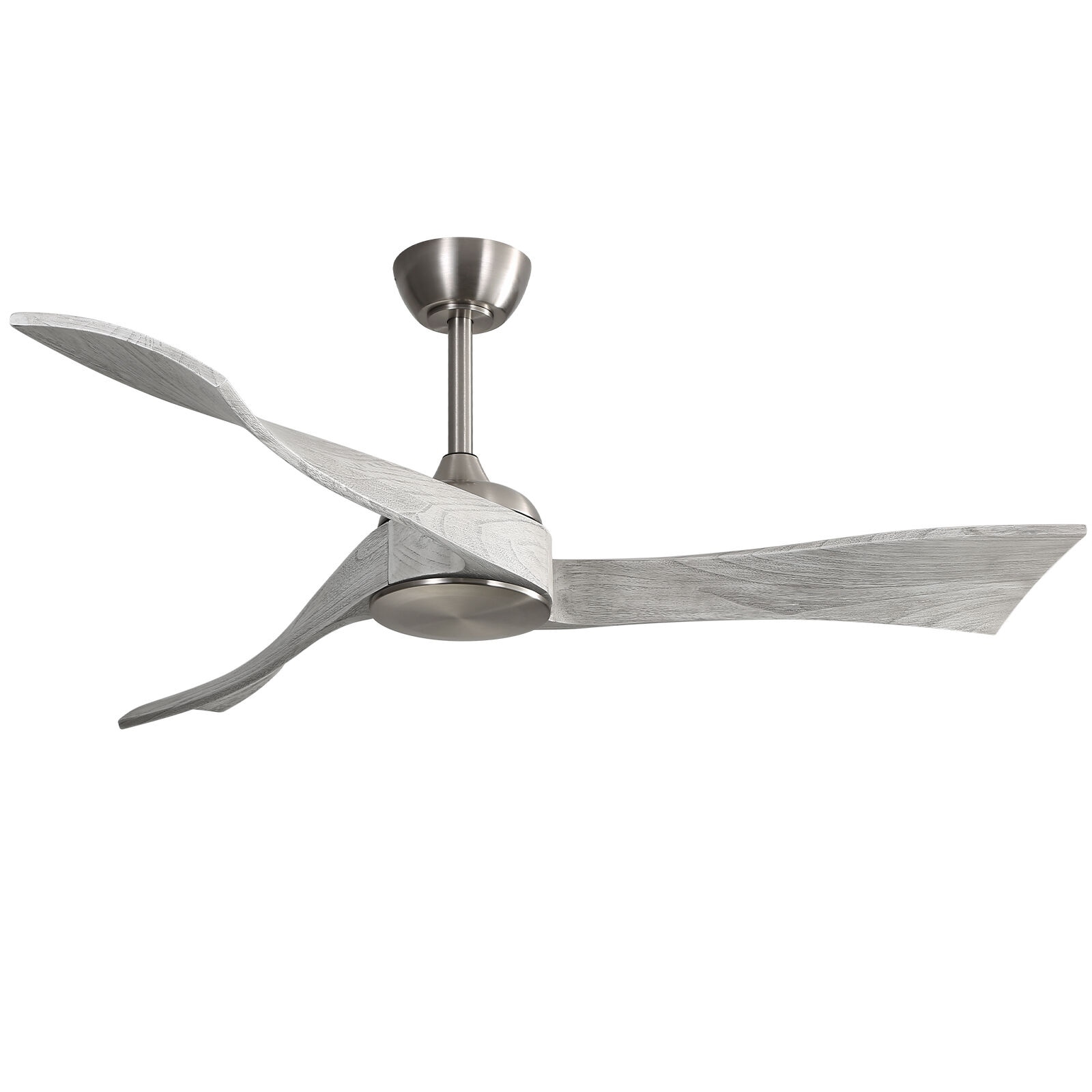52 Inch Modern Ceiling Fan Without Light 6 Speed Remote 3 Solid Wood Blade Reversible Dc Motor For Indoor&Outdoor - 52inch