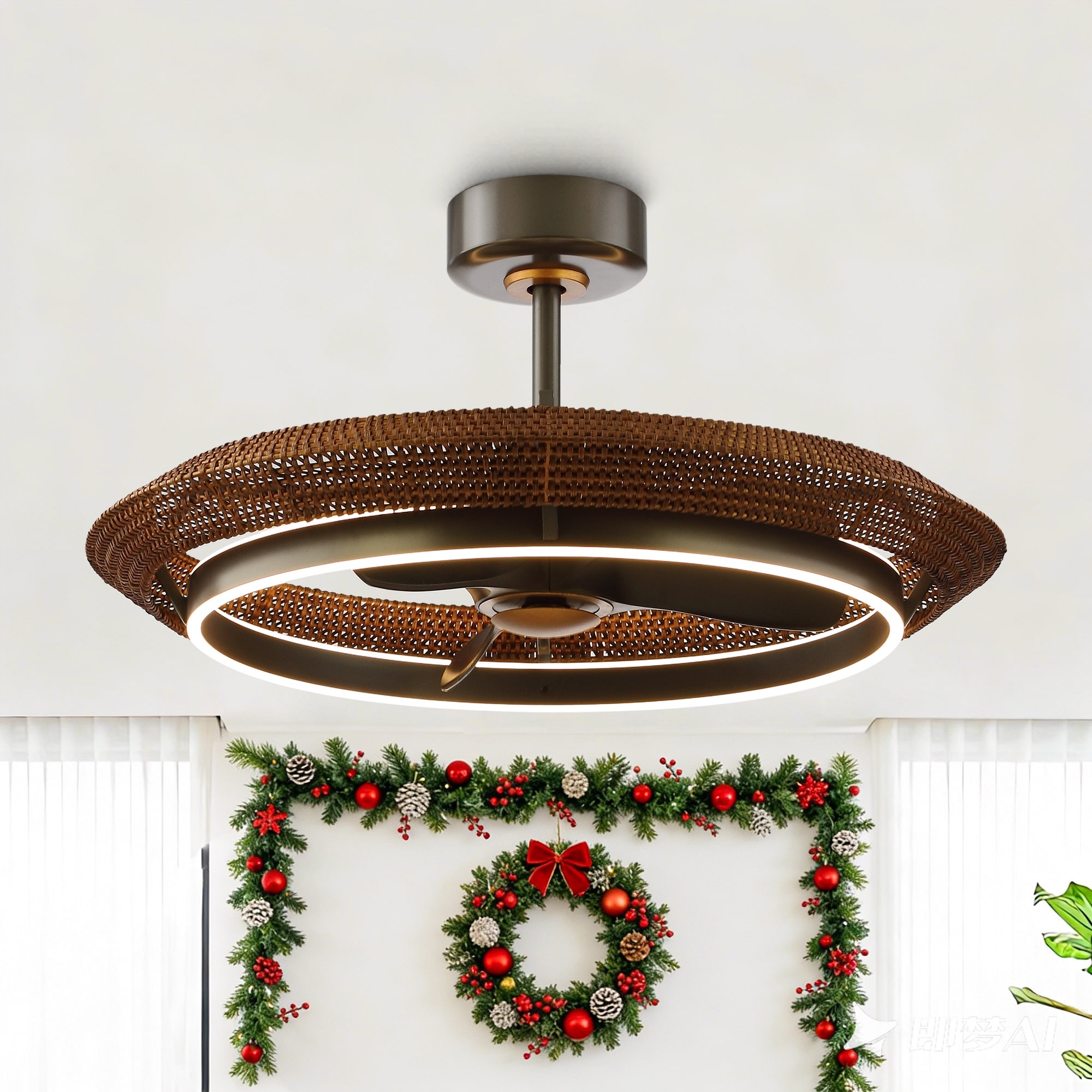 33" Coastal Rattan Fandelier Bladeless LED Ceiling Fan with Light and Remote