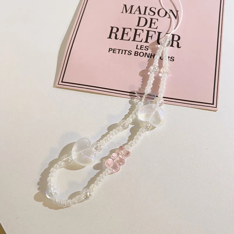 Sweet Pink Bear & Heart Strawberry Bow Phone Chain: Women's Acrylic Pearl Beaded Accessory 19