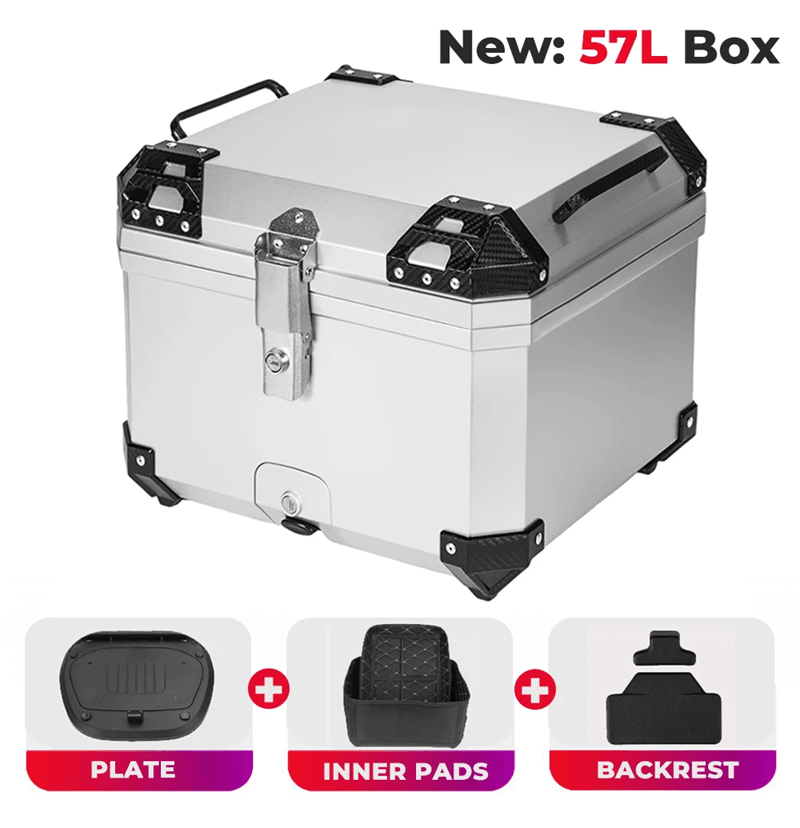 AdventureGuard 65L Universal Aluminum Motorcycle Top Case With Lock 57l Silver Box