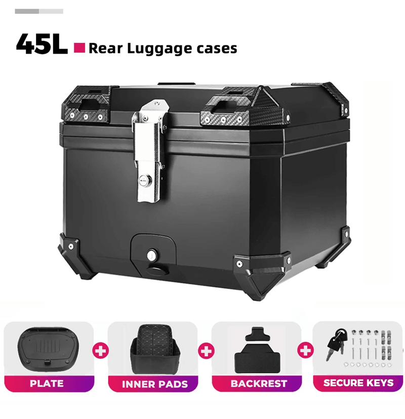 AdventureGuard 65L Universal Aluminum Motorcycle Top Case With Lock 45l Black Box