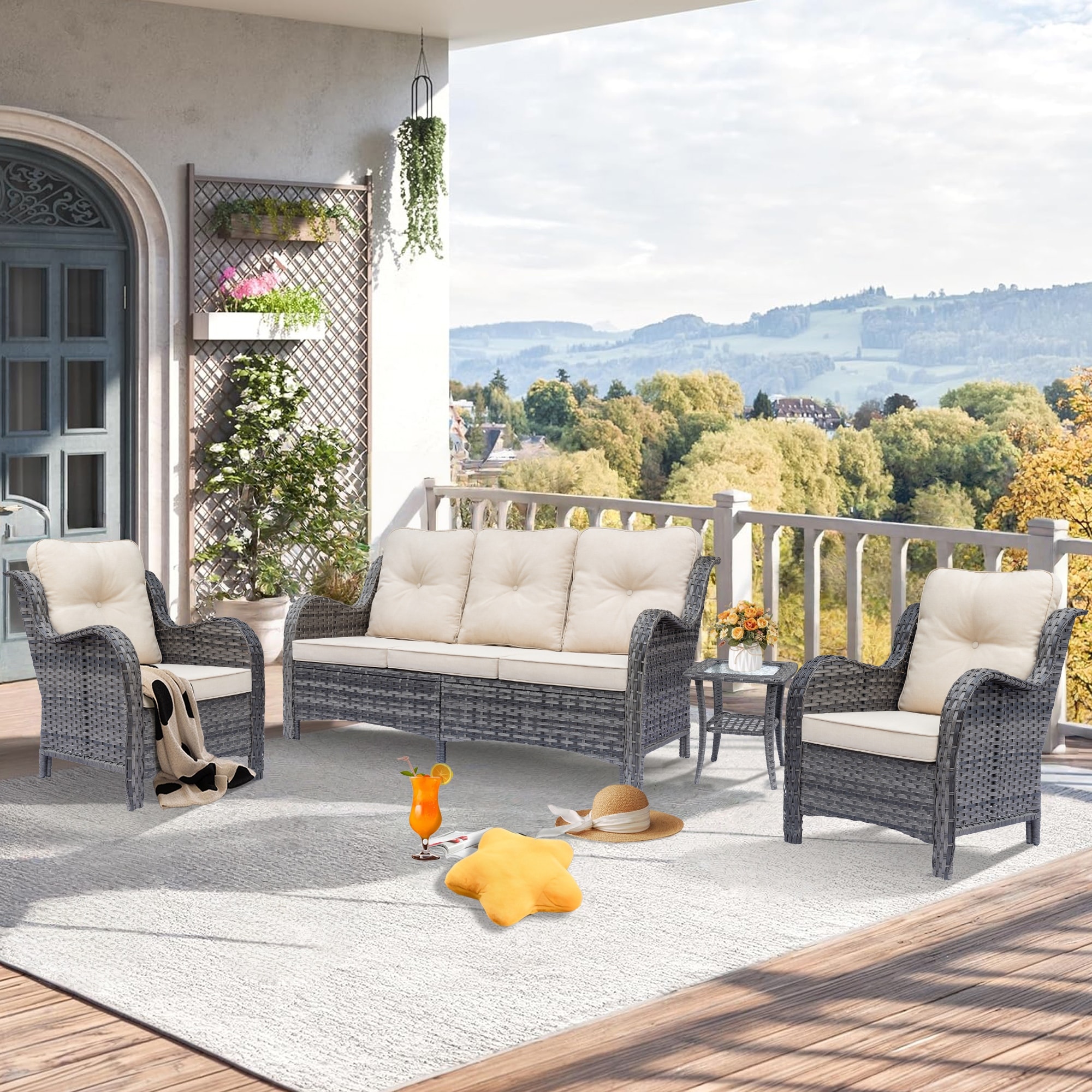 High Back Wicker Outdoor Patio Conversation Seating Sets with Cushions