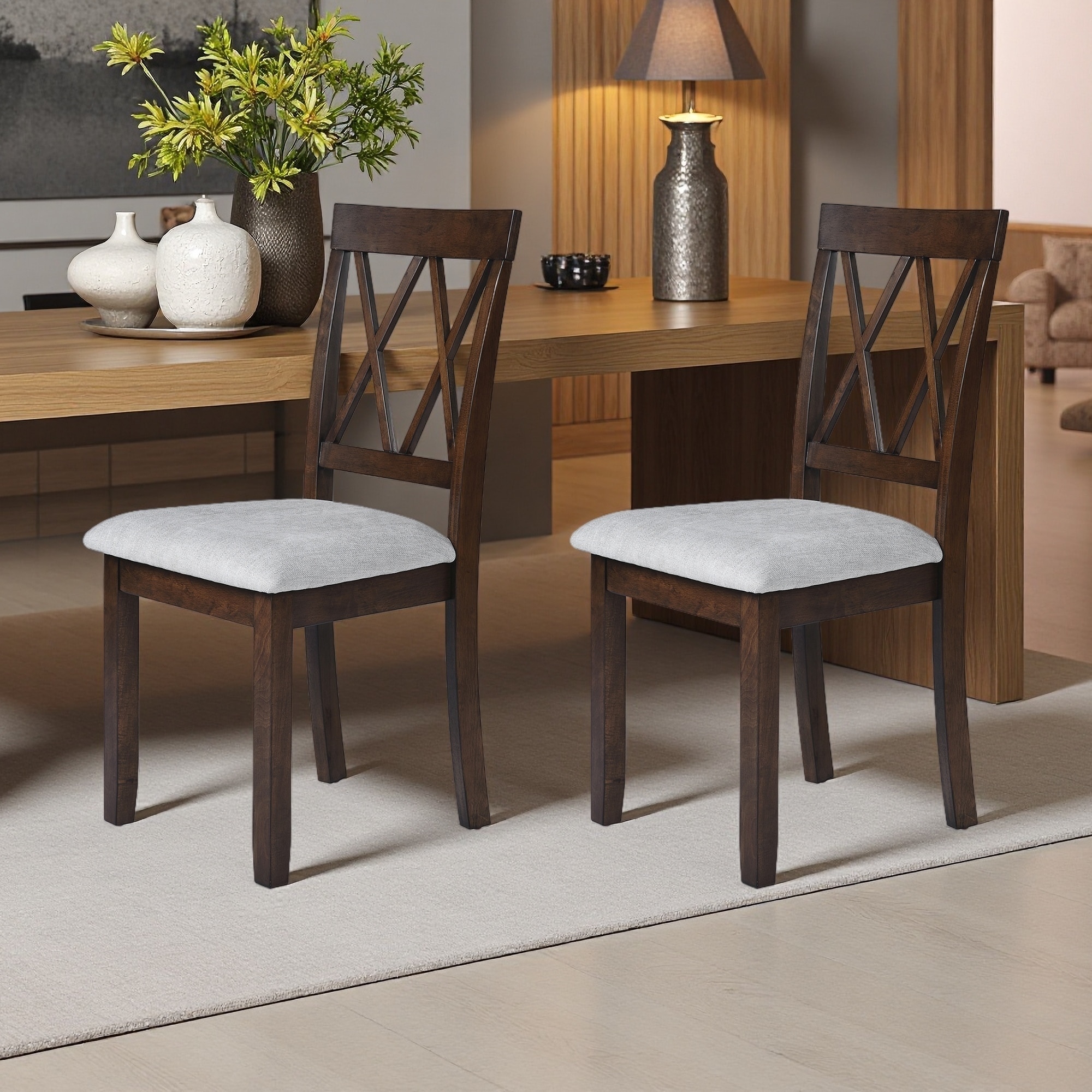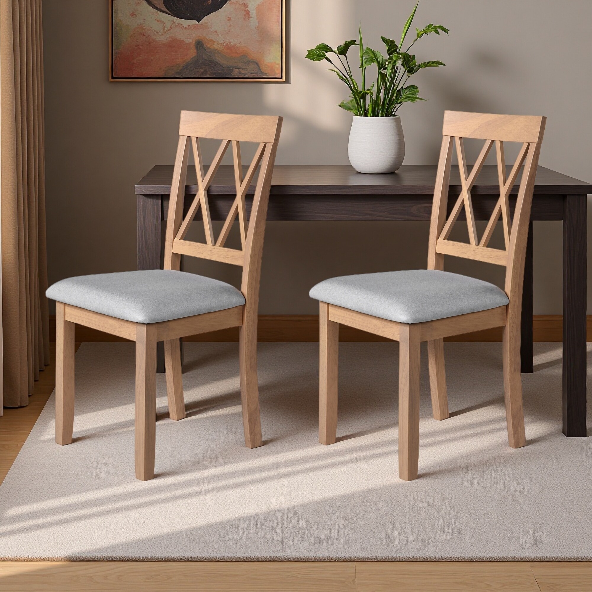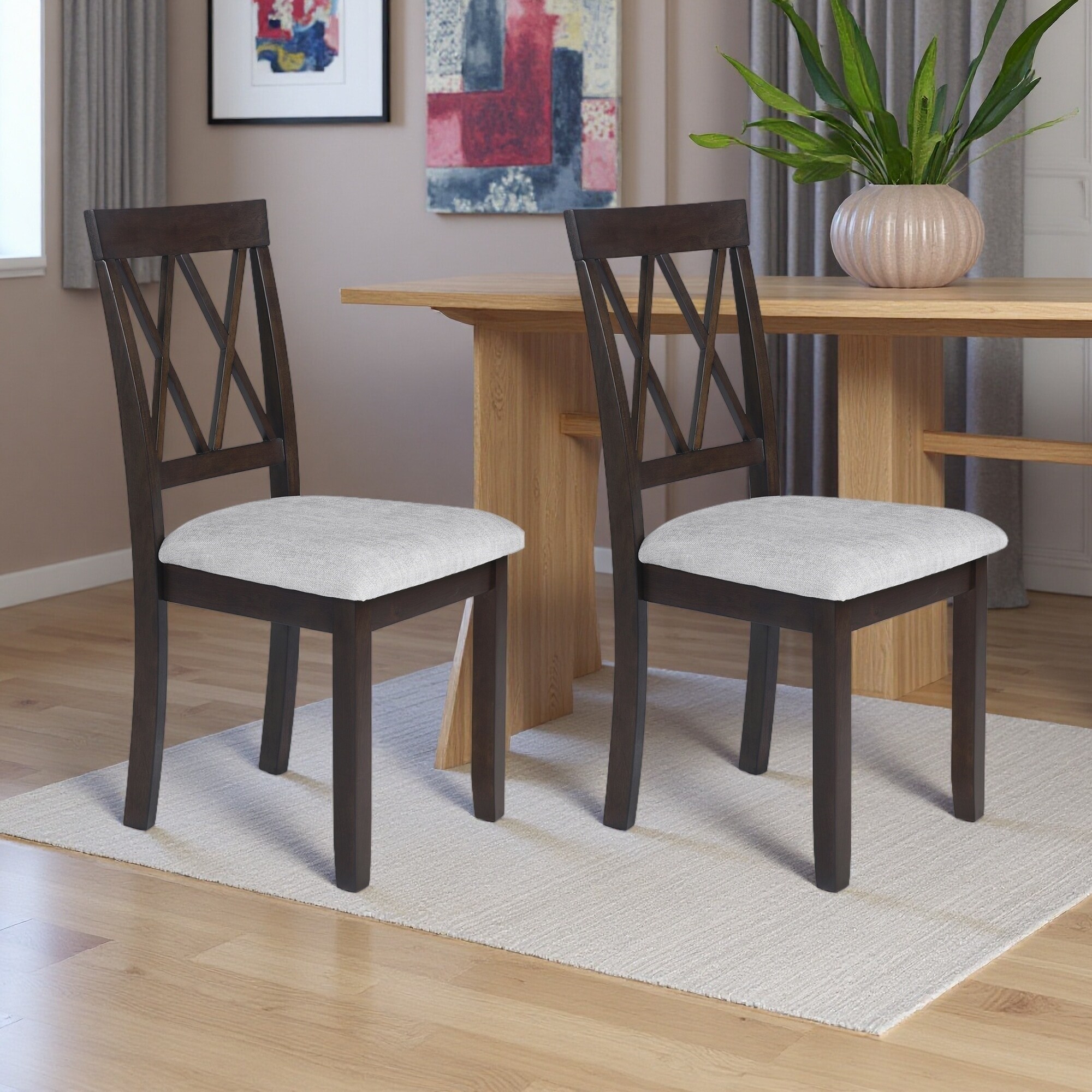37"H Set of 2 Upholstered Dining Chairs with Tufted Back & Solid Wood Legs