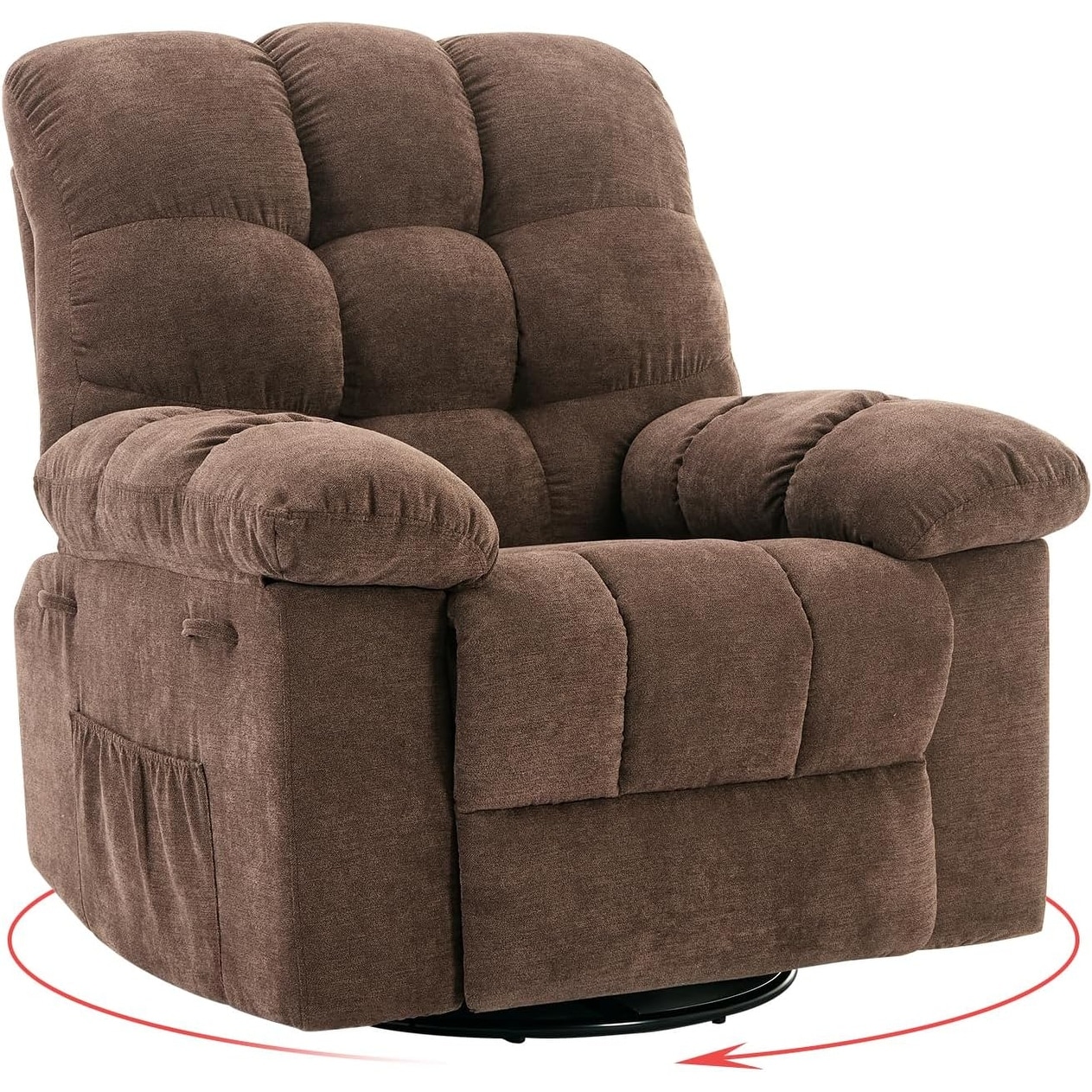 360° Swivel Rocker Chair for Living Room,Upholstered Fabric Glider Nursery Chair with Side Pockets