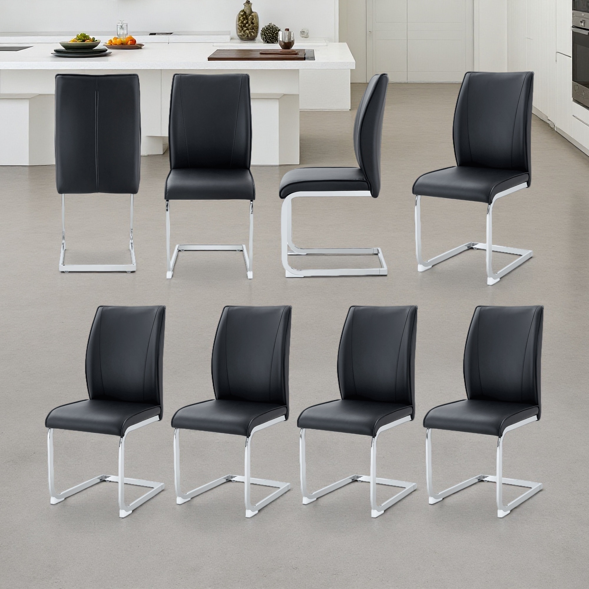 39"H Set of 8 PU Leather Dining Chairs with High Back & Metal Legs