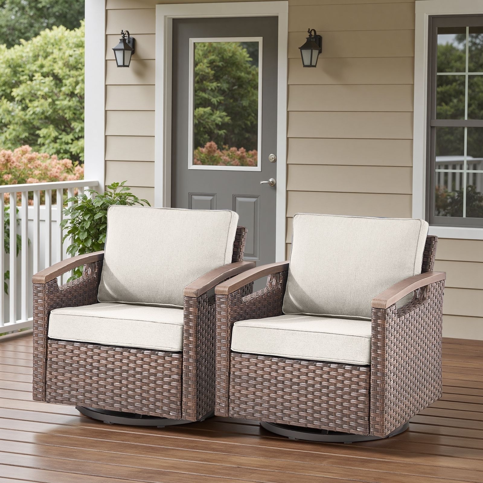 Pocassy Outdoor Swivel Chair with Cushion Set