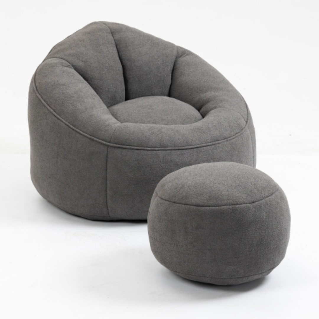 Faux Fur Plush Accent Bean Bag Lazy Lounge Sofa Chairs wRound Ottoman