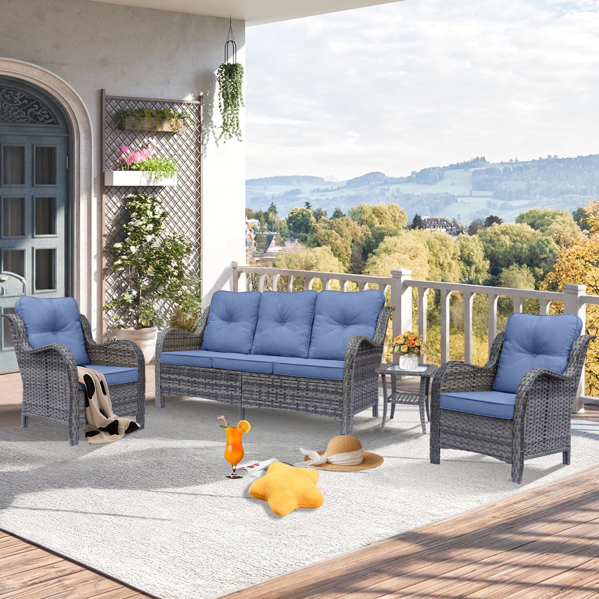 High Back Wicker Outdoor Patio Conversation Seating Sets with Cushions