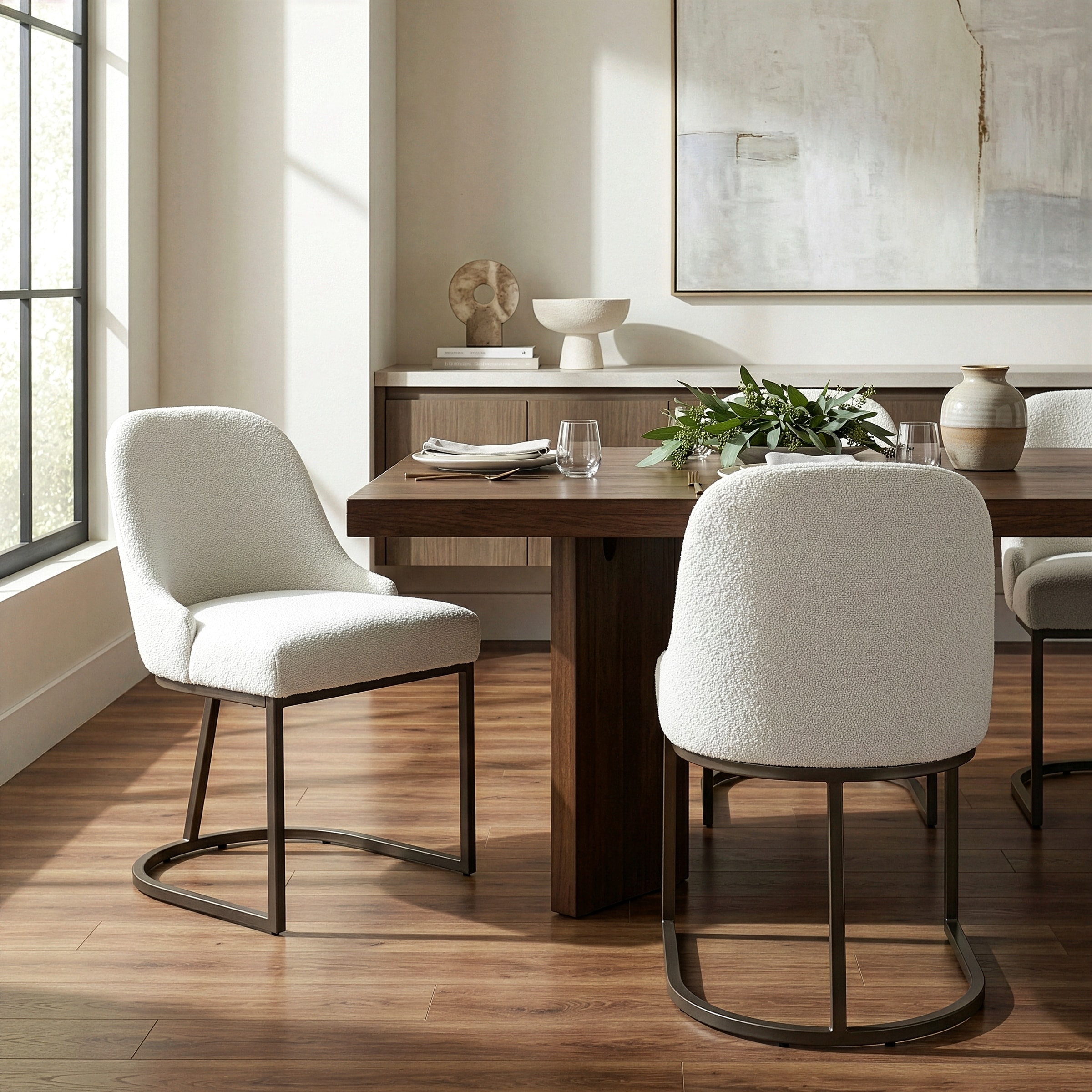 Set of 2 Ayane White Boucle Dining Chair with Iron Legs