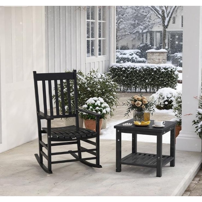 Rocking Chair Set With Side Table, 3-Piece Rocking Chair Set With Wood-Texture, (Includes 2 Rocking Chairs And 1 Table)