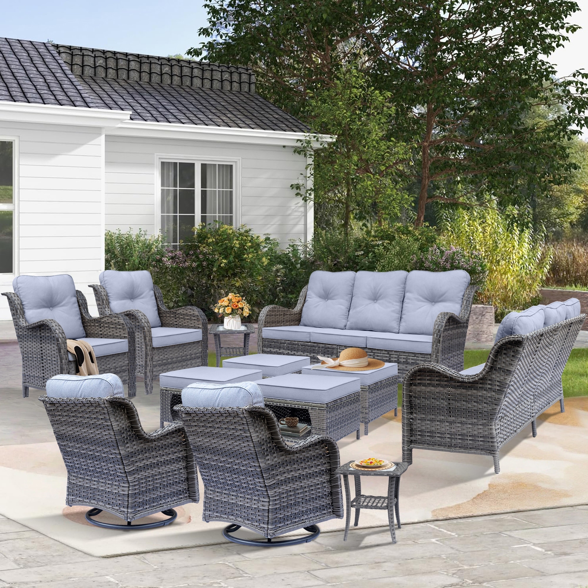 Gray Wicker Outdoor Patio Furniture Set with Swivel Rocker Patio Chairs