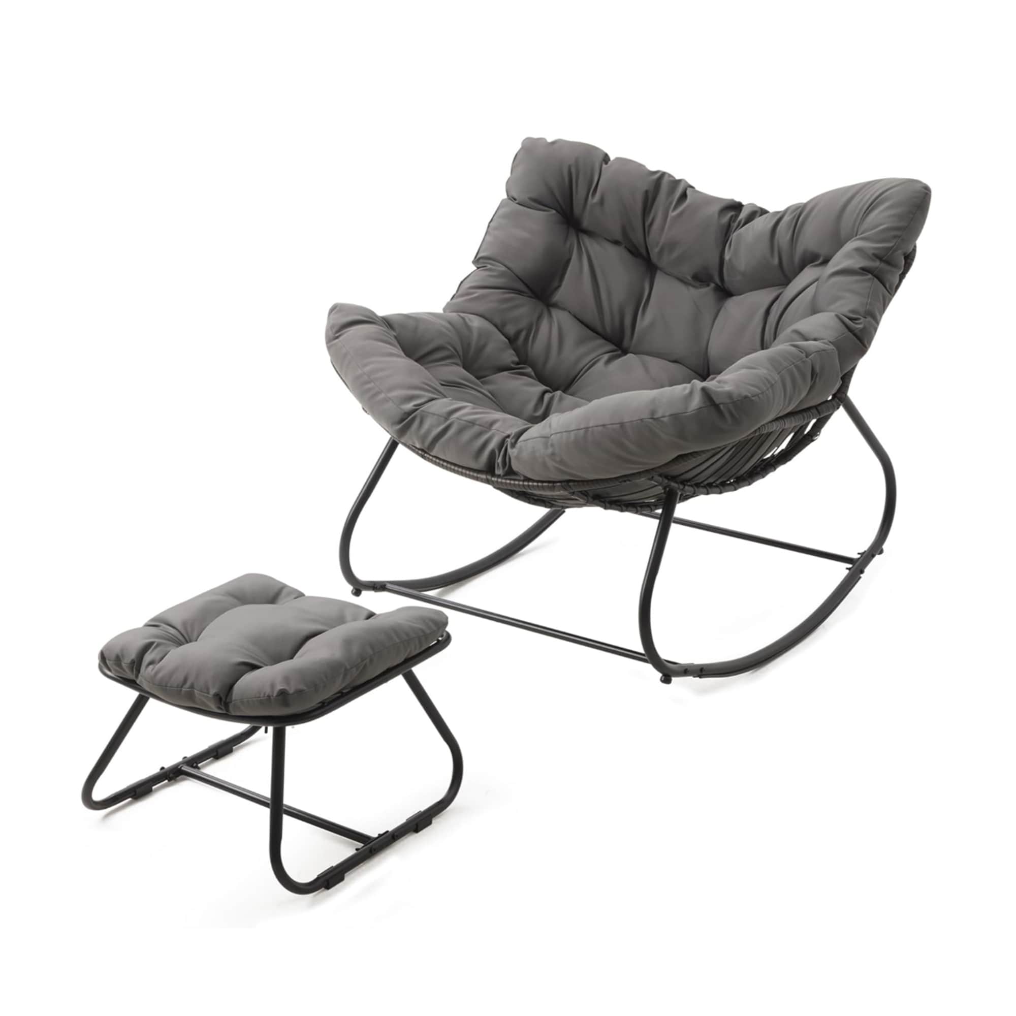 Dark Gray Egg Rocking Chair with Ottoman, Wicker Lounge