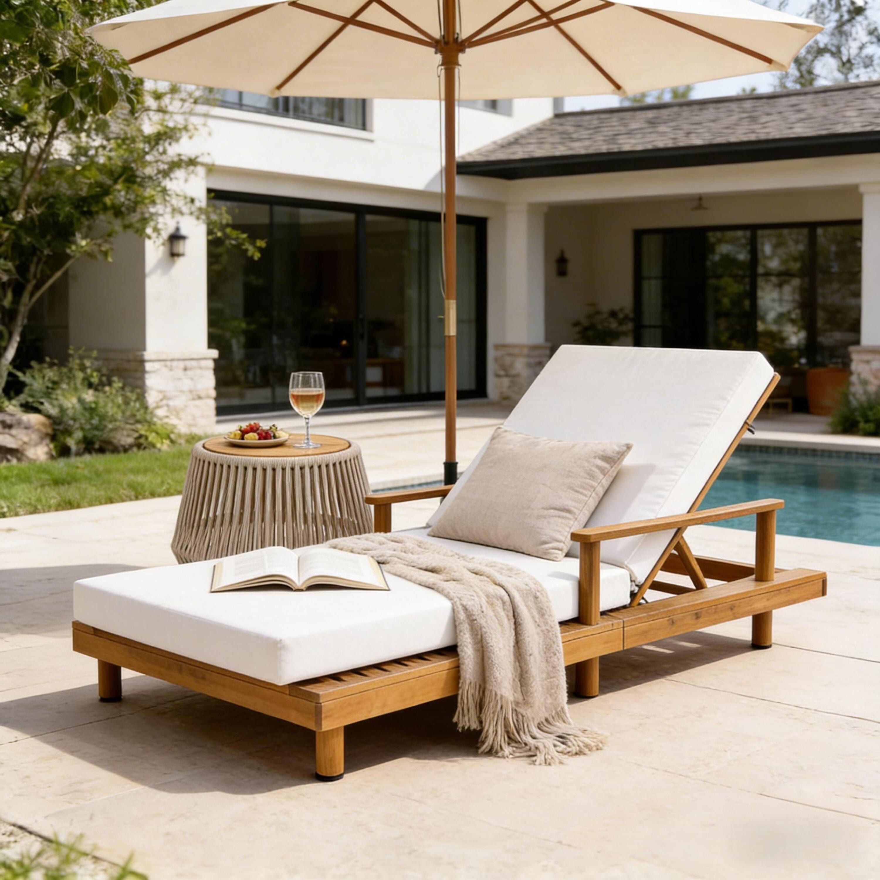 5-Position Adjustable Outdoor Solid Acacia Wood Chaise Lounge Chair w/Cushions for Garden, Balcony & Deck - N/A