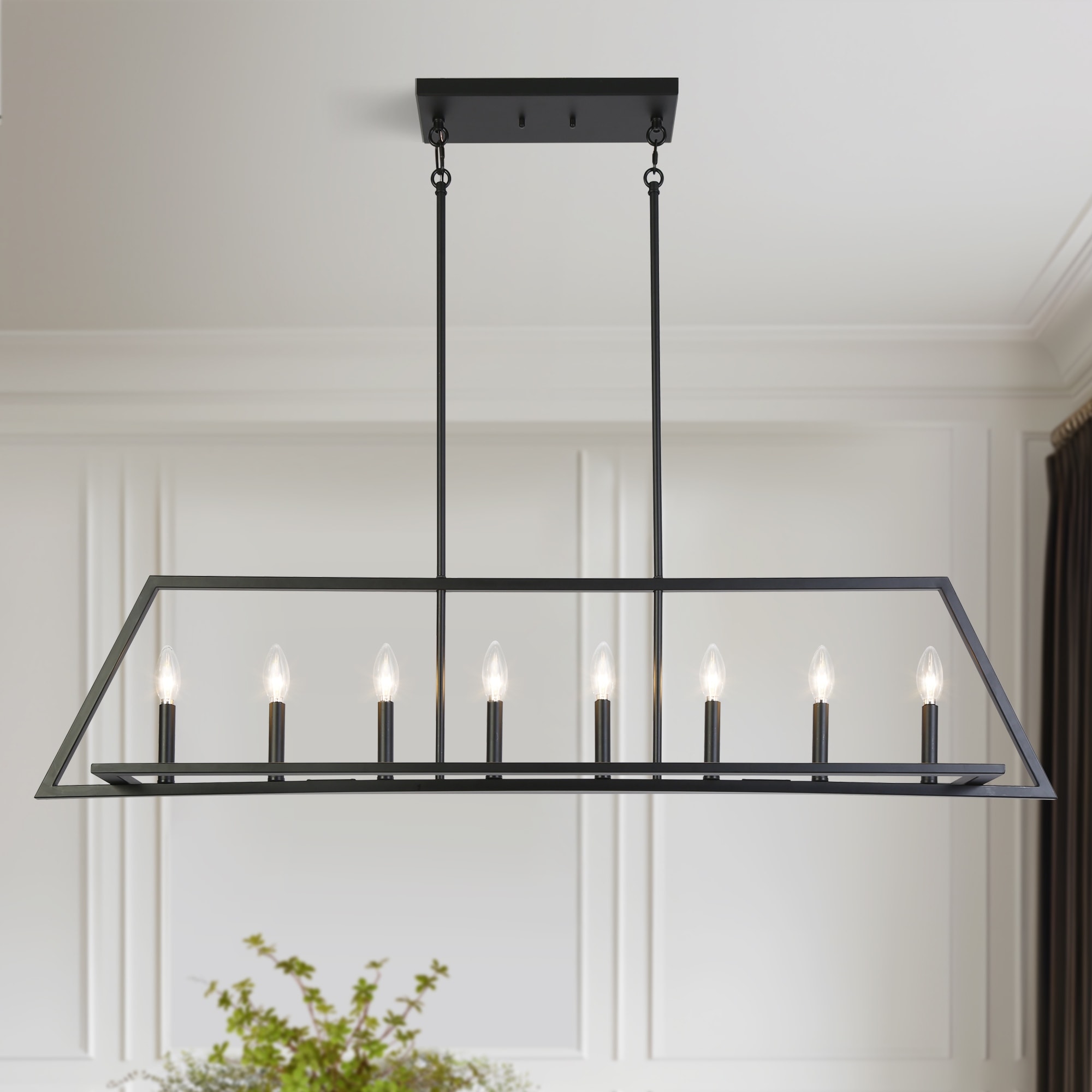 Modern Farmhouse Black 8-Light Chandelier Large Metal Kitchen Island Light - L55.1" x W7.9" x H11.6"