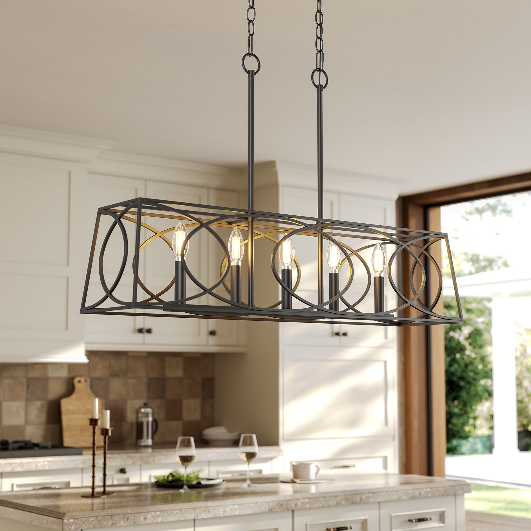 Modern Farmhouse 6-Light Black Gold Chandelier Linear Glass Island Lights for Dining Room