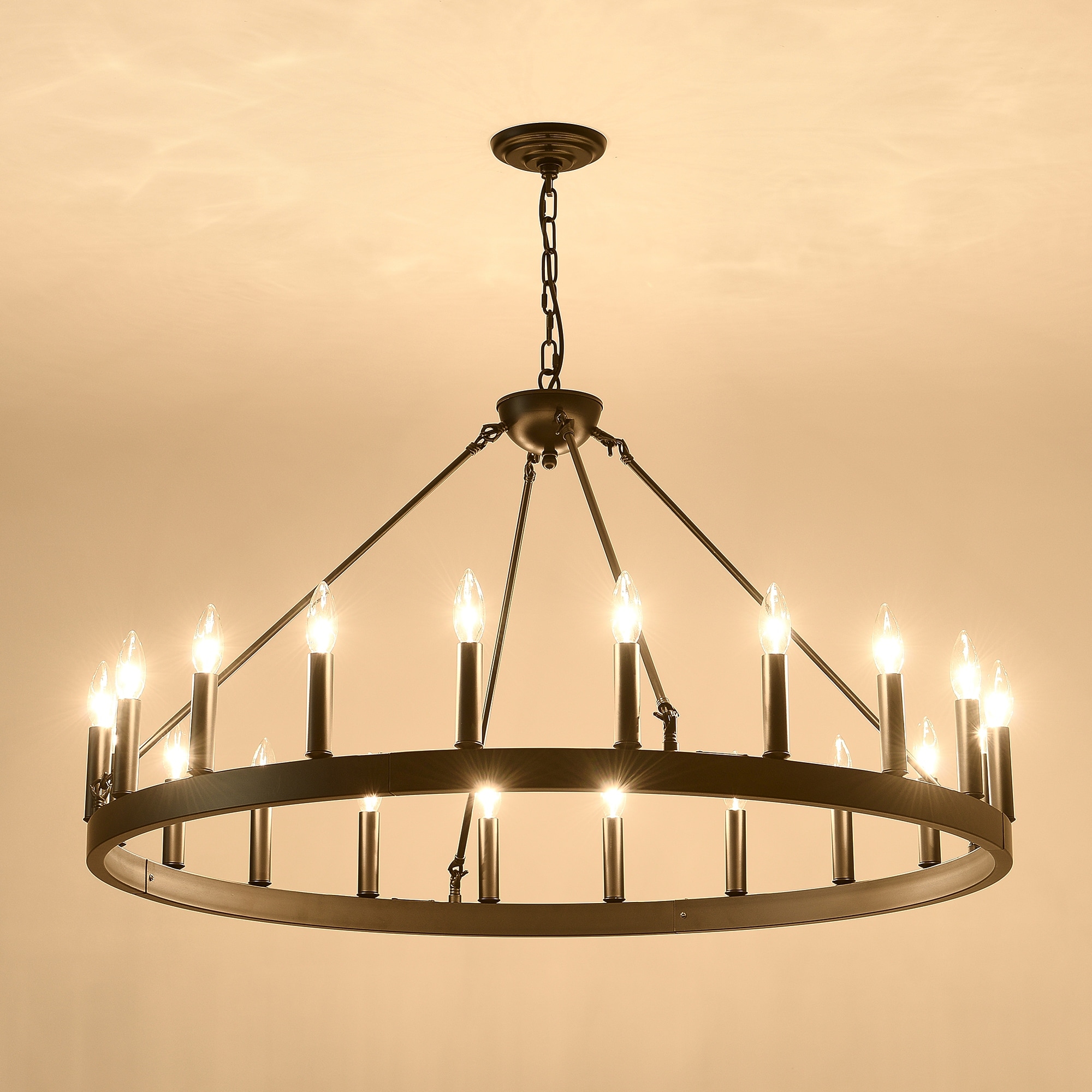 39.4" 20-Light Extra Large Wagon Wheel Chandelier, Farmhouse Industrial, Adjustable, E12