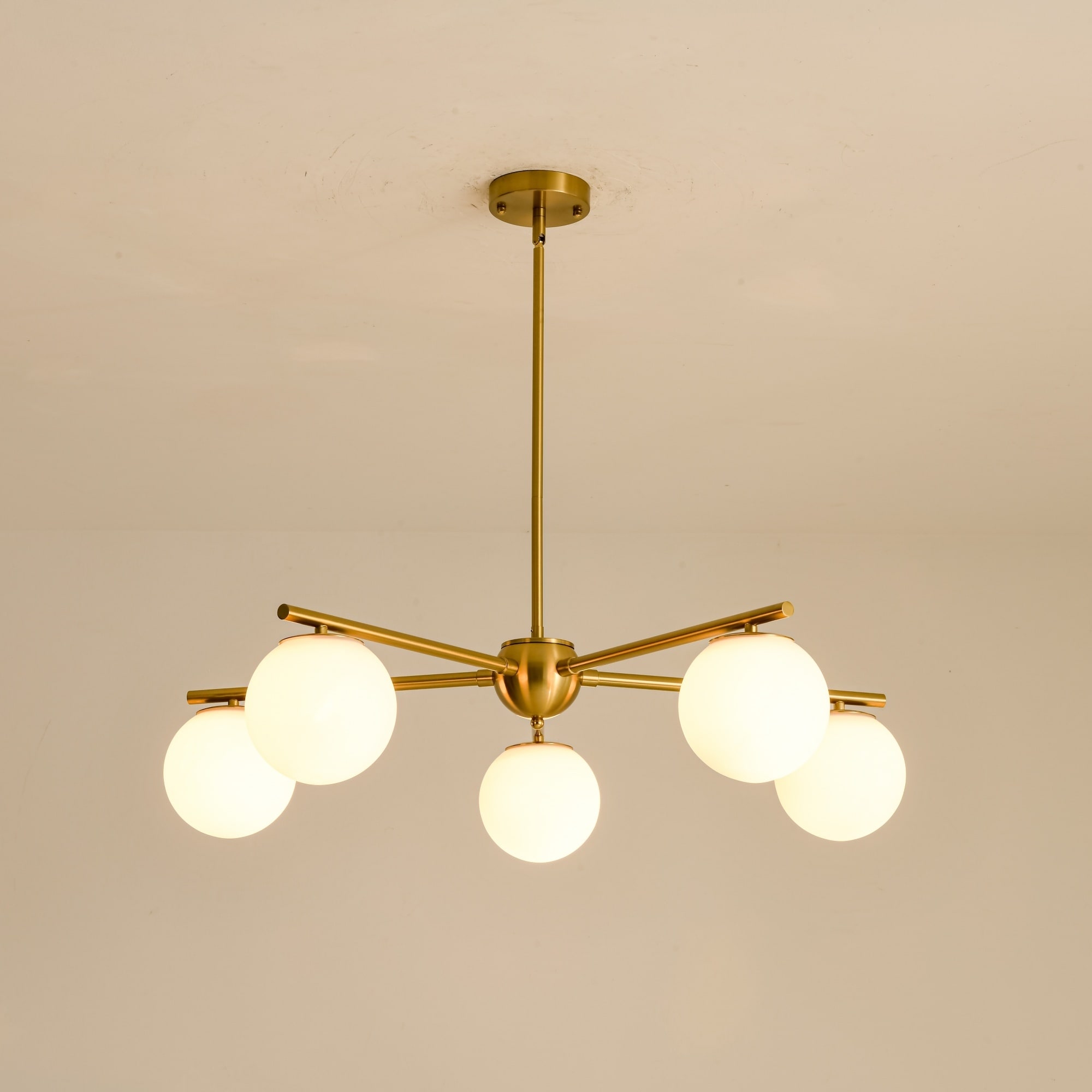5-Light Brass Globe Chandelier, Modern Mid-Century Pendant for Living Room & Dining Room - 5 Light