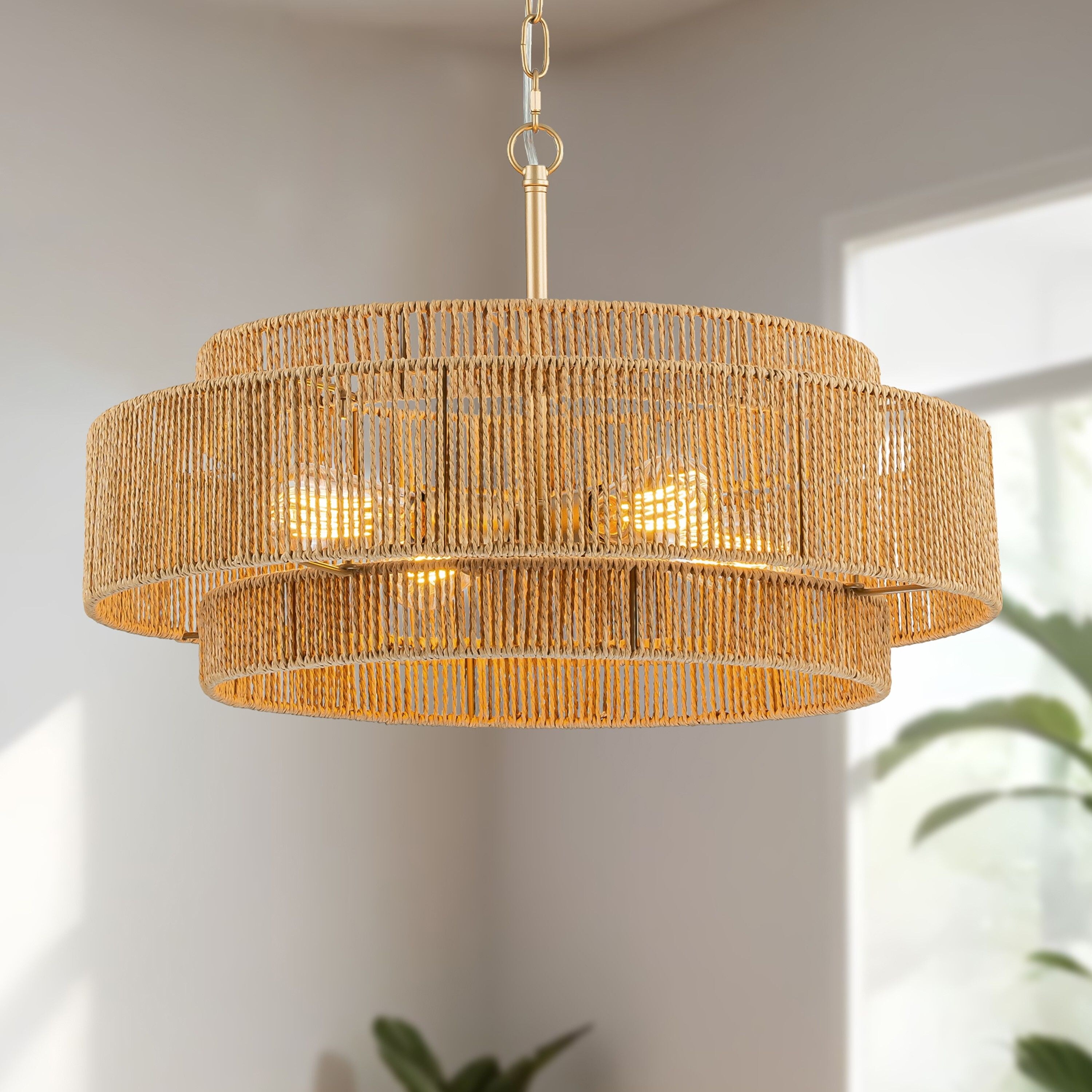 Starsky 4-Light 23inch Rattan Tiered Bohemian Light Fixture Drum Chandelier