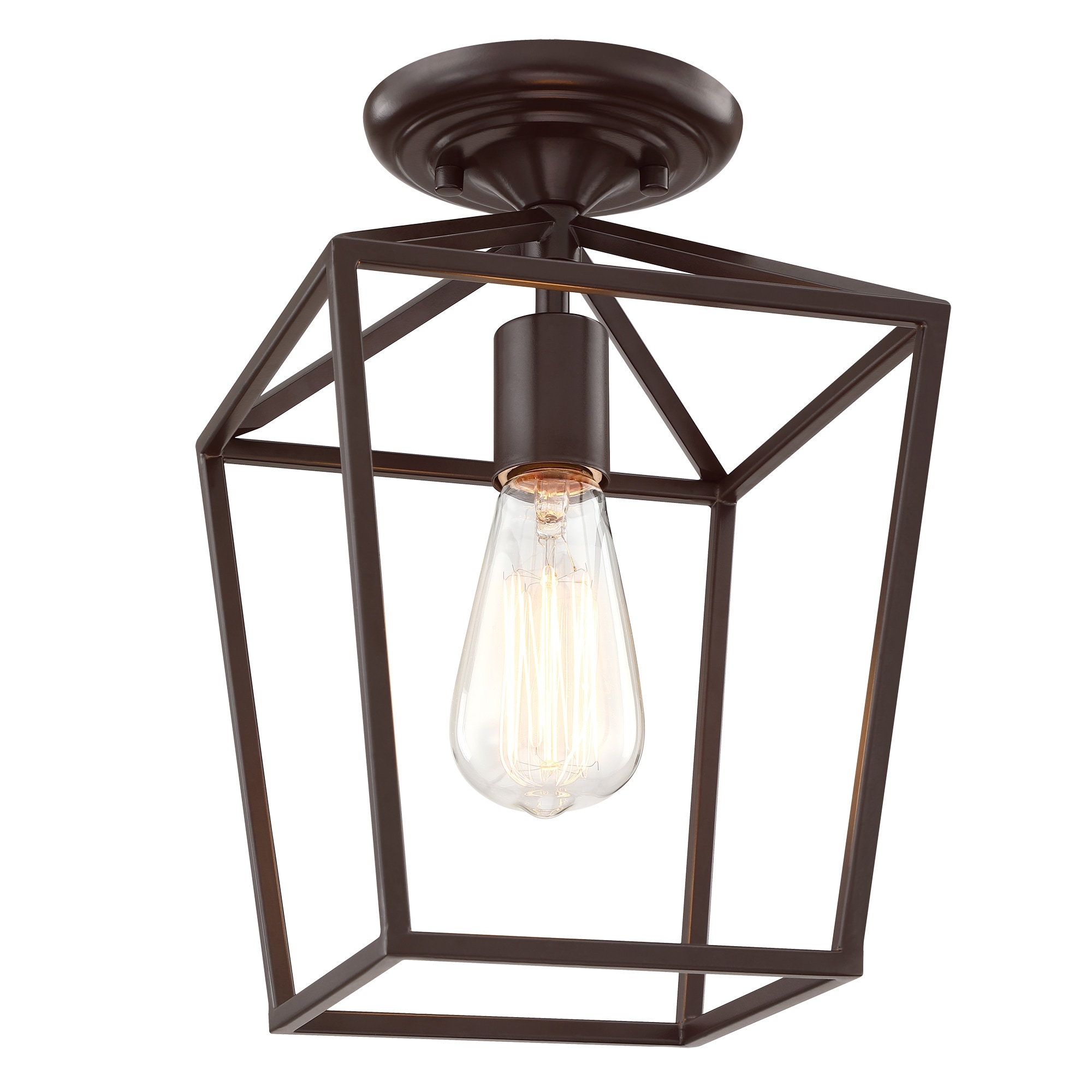 Wispfire 1-Light Indoor Vintage Bronze Modern Chandelier Lights with Caged Metal Shad, Semi Flush mount, E26 Lamp holder