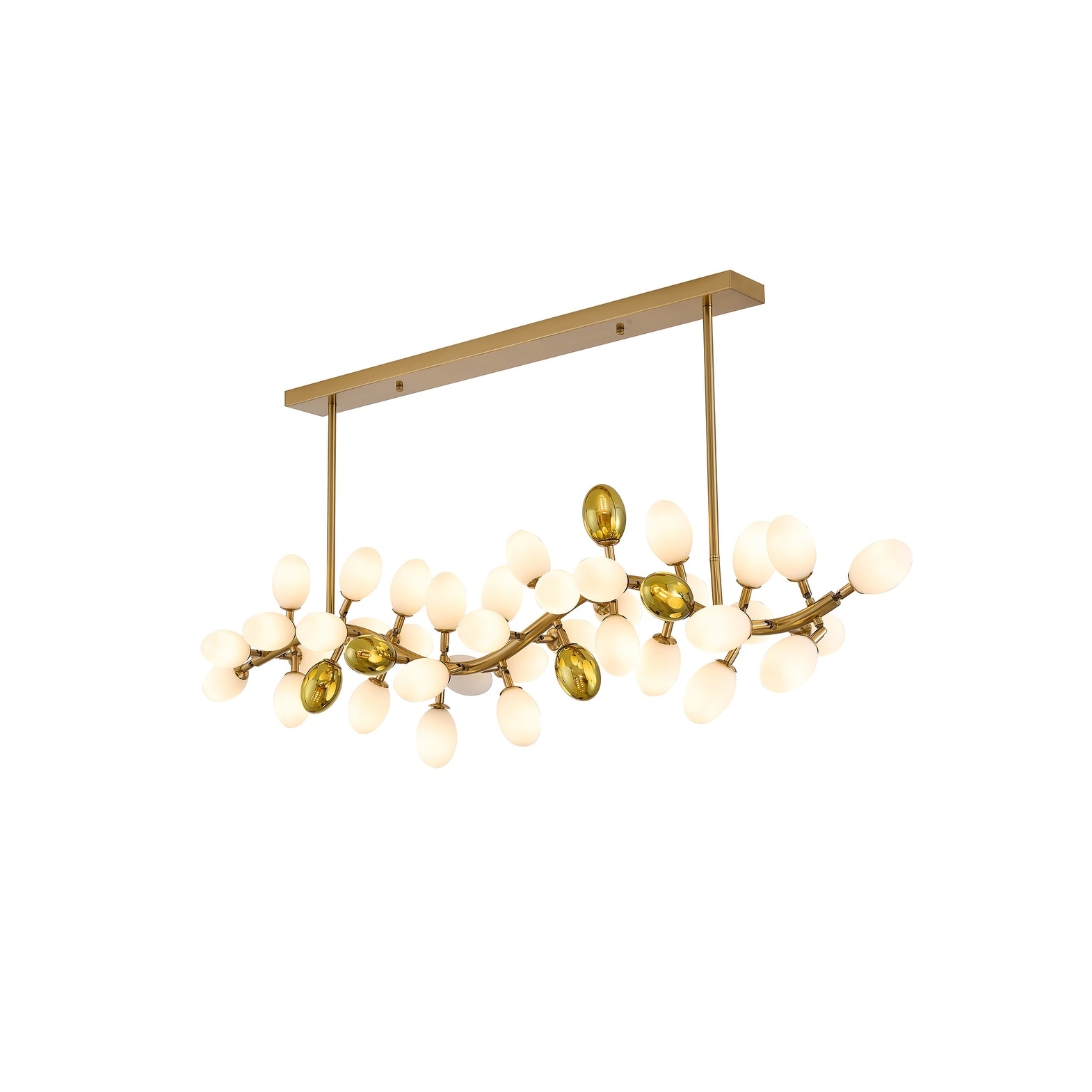 42-Light Satin Brass Chandelier With White Glass Shades - N/A