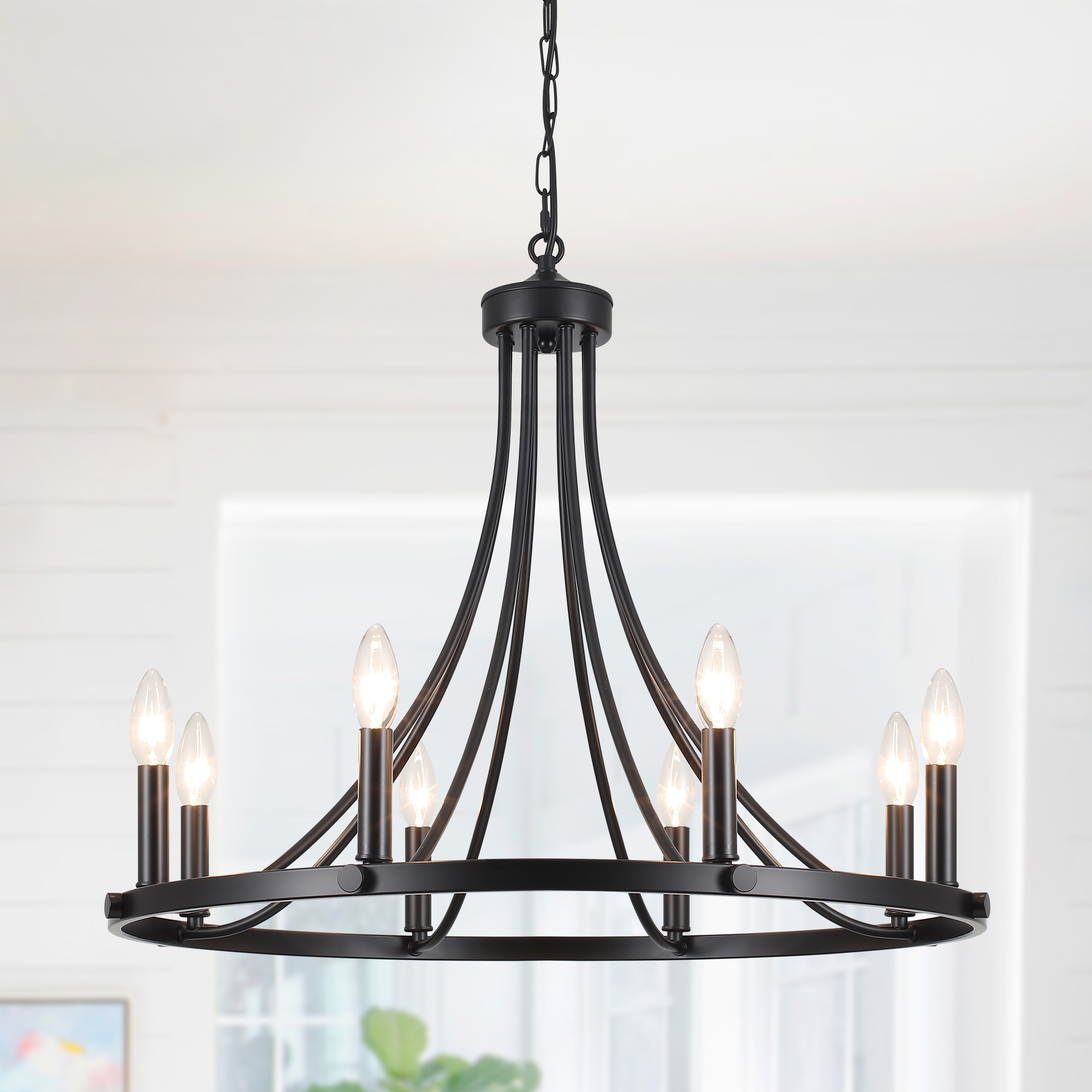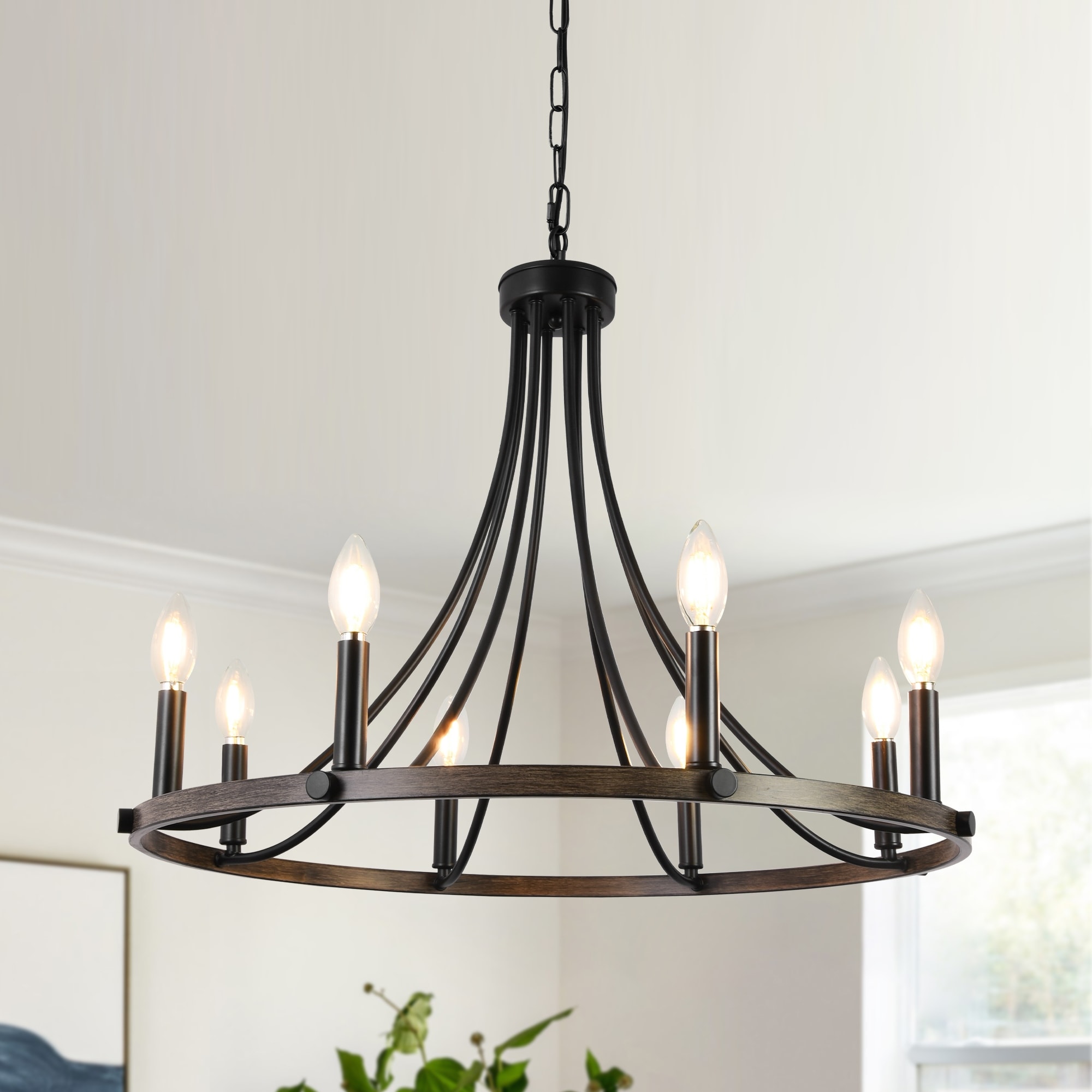 8-Light 25.59 Inch Wagon Wheel Chandelier for Dining Room