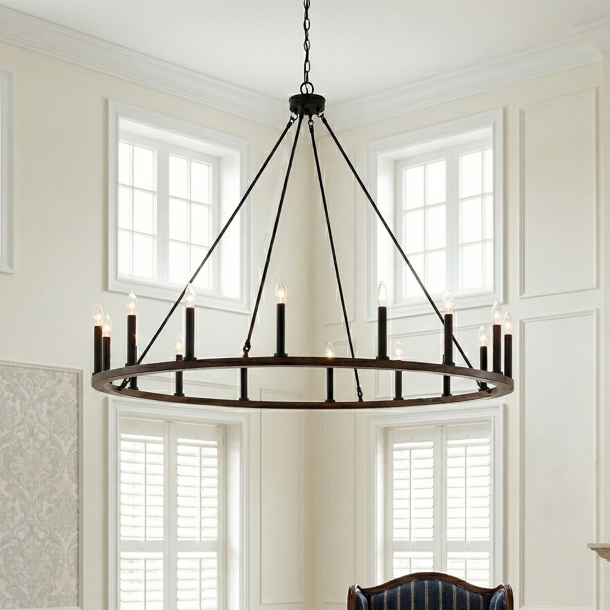 47In Farmhouse 16-light Large Round Wagon Wheel Candle Chandelier - 47'' D X 140'' H