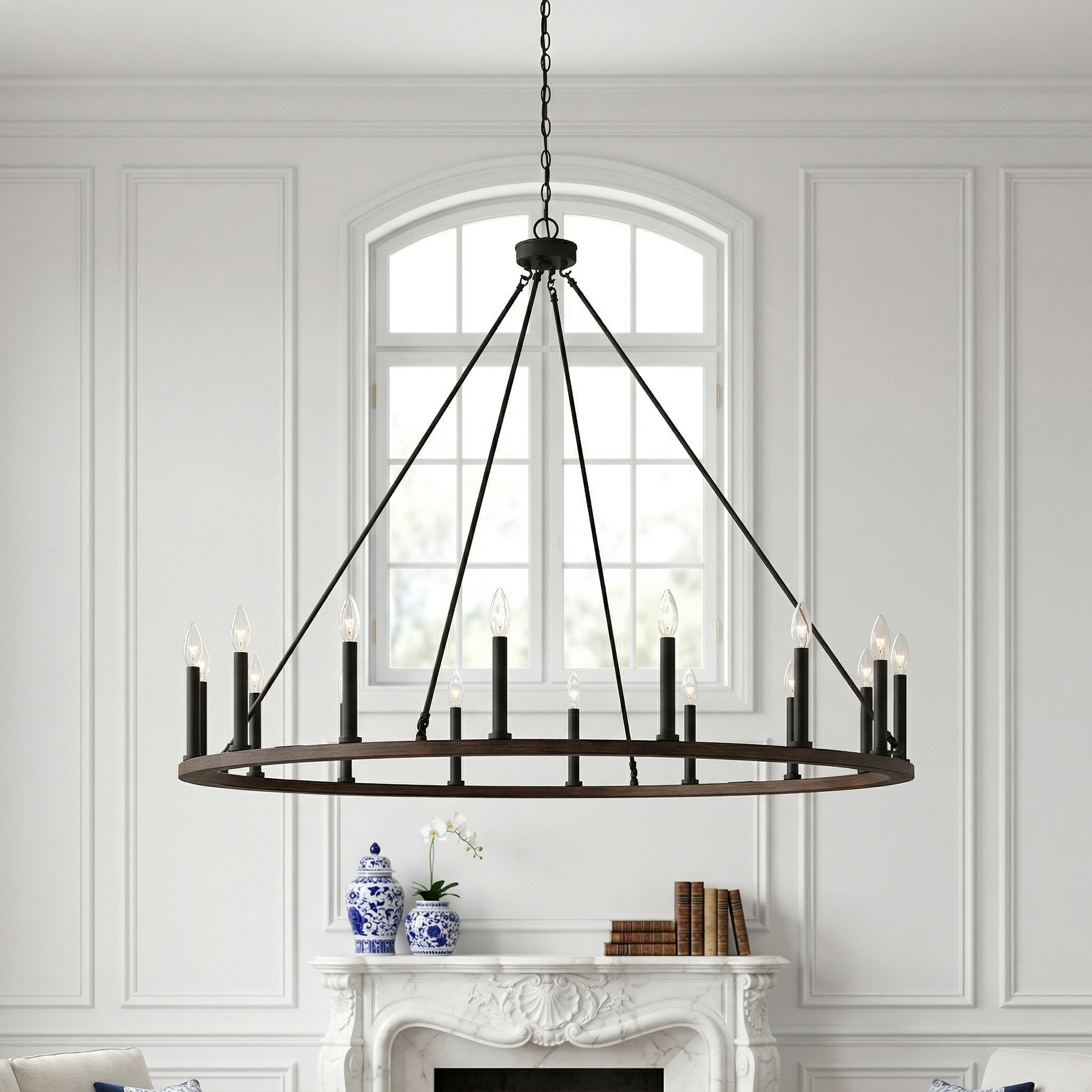 47In Farmhouse 16-light Large Round Wagon Wheel Candle Chandelier - 47'' D X 140'' H