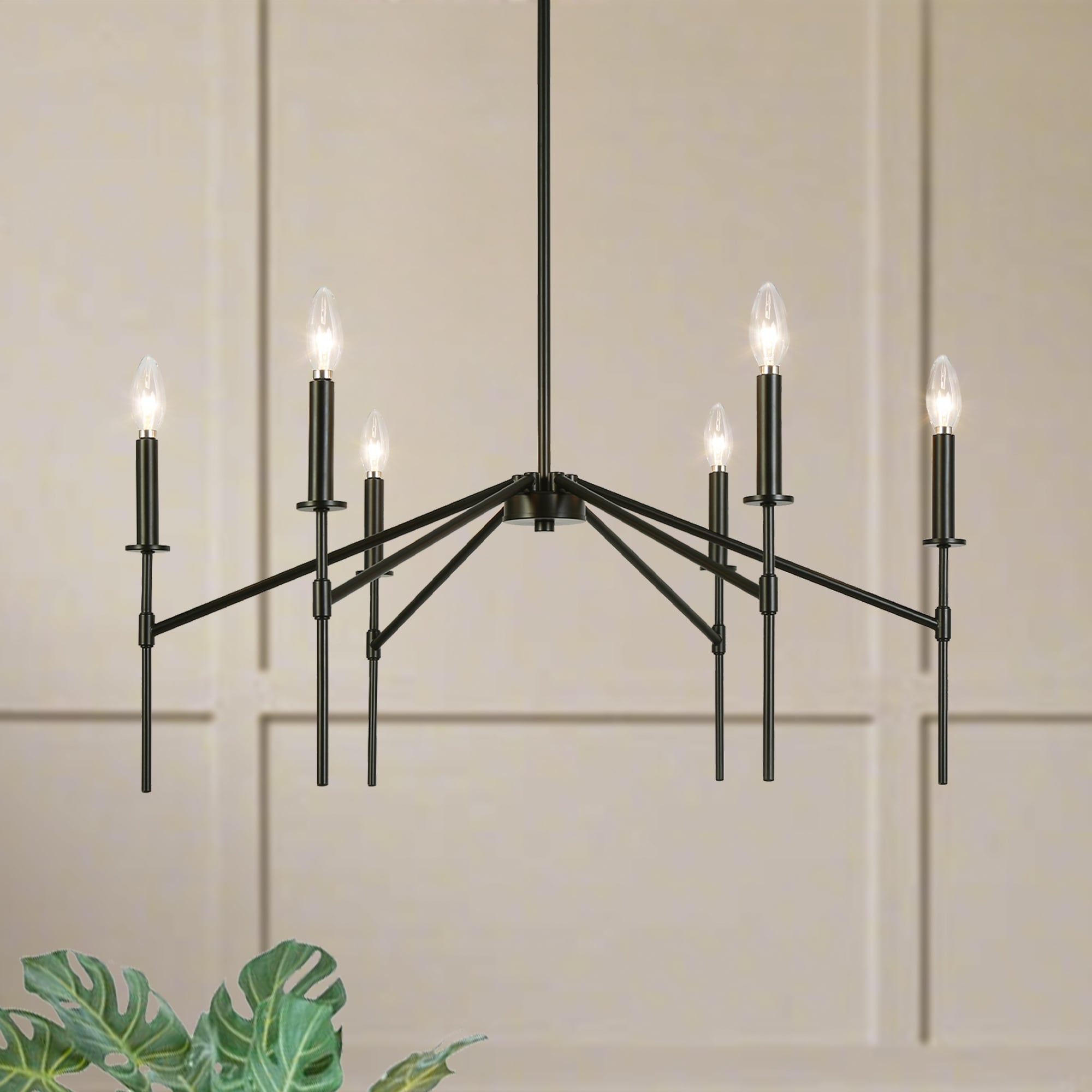 Modern 6-Light Black Chandelier Industrial Metal Light Fixture for Dining Room - 32.7 " L × 13.8 " H